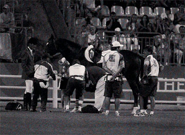 對(duì)德國(guó)人來(lái)說(shuō),1936年柏林奧運(yùn)會(huì)上最大的英雄,是馬術(shù)運(yùn)動(dòng)員康瑞德·馮·瓦根海姆。 他參加的是馬術(shù)三日賽的團(tuán)體項(xiàng)目比賽。這個(gè)項(xiàng)目是奧運(yùn)會(huì)三個(gè)馬術(shù)項(xiàng)目中難度最大,對(duì)運(yùn)動(dòng)員要求最嚴(yán)的一個(gè)項(xiàng)目。比賽分三天舉行,第一天是盛裝舞步賽,第二天是這個(gè)項(xiàng)目中最為重要的越野賽,最后一天是場(chǎng)地障礙賽。這次奧運(yùn)會(huì)的越野賽堪稱(chēng)最為艱難,50名選手中的31人都在跨越一道水渠障礙時(shí)落馬。 更不幸的是德國(guó)隊(duì)騎手瓦根海姆落馬后摔斷了左側(cè)鎖骨,隊(duì)醫(yī)當(dāng)即宣布他不能比賽了。但當(dāng)瓦根海姆從領(lǐng)隊(duì)嘴里得知,如果他不能完成比賽,整個(gè)德國(guó)隊(duì)就無(wú)法晉級(jí),也就無(wú)法去爭(zhēng)奪冠軍的時(shí)候,他倔強(qiáng)地再度上馬,強(qiáng)忍劇痛,順利完成后面的32個(gè)障礙。 1936年8月16日,就在奧運(yùn)會(huì)閉幕的這一天,馬術(shù)三日賽團(tuán)體決賽最后一天的角逐在障礙賽場(chǎng)上演,贏得這場(chǎng)比賽,東道主在這次奧運(yùn)會(huì)上的表現(xiàn)就畫(huà)上一個(gè)完美的句號(hào)。成績(jī)領(lǐng)先的德國(guó)隊(duì)只要正常發(fā)揮,就可以贏得這塊渴望已久的金牌。當(dāng)瓦根海姆單手持韁纏著繃帶來(lái)到了比賽場(chǎng)上時(shí),全場(chǎng)觀眾給予了最熱烈的喝彩。 可是,就在跳躍第一個(gè)組合障礙的時(shí)候,馬向前沖得很厲害,由于受傷的他不能用自己的雙手去牢牢地控制住韁繩,結(jié)果他的馬在急速轉(zhuǎn)彎時(shí)摔倒了,更不幸的是,馬重重地壓在了他的身上。在大家的幫助下瓦根海姆奮力地從馬下面爬出來(lái),而馬一直靜靜地躺在地上,一動(dòng)不動(dòng),就像已經(jīng)沒(méi)有了生命一樣。此時(shí),全場(chǎng)的人都屏住呼吸為他們捏著一把汗。在觀眾的惋惜之中,那匹馬又恢復(fù)了生命力,突然躍起,更讓那些在場(chǎng)的德國(guó)人都不敢相信的是,瓦根海姆又再度上馬并又一次毫無(wú)差錯(cuò)地完成了剩下的動(dòng)作。最后,德國(guó)隊(duì)終于獲得了這枚渴望的金牌。在座的10萬(wàn)名觀眾都站起來(lái)為他喝彩,瓦根海姆用勇氣和一名騎手的不放棄的精神詮釋了的奧林匹克運(yùn)動(dòng)的魅力。 |