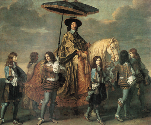 查理·勒布倫(1619-90) 大法官塞古埃騎馬像,布面油畫(huà) 私人藏品 查理·勒布倫出生于法國(guó)巴黎,他的父親從事藝術(shù)行業(yè),是當(dāng)?shù)匦∮忻麣獾牡窨碳?。在勒布?15 歲時(shí),就已經(jīng)為紅衣主教黎塞留工作。隨后,他幸運(yùn)地遇到了人生中的貴人——大法官皮埃爾·塞古埃,塞古埃很欣賞他的才華,資助他去意大利留學(xué)深造,這一堅(jiān)持就是長(zhǎng)達(dá) 4年的時(shí)間。在意大利,勒布倫曾為烏爾巴諾八世和烏爾巴諾三世工作,這段經(jīng)歷幫助他迅速成長(zhǎng)了起來(lái)。 留學(xué)結(jié)束,他回到法國(guó),取得了更加輝煌的成就。1648 年,勒布倫積極促成了皇家繪畫(huà)與雕塑藝術(shù)學(xué)院的創(chuàng)立。又過(guò)了幾年,勒布倫結(jié)識(shí)了當(dāng)時(shí)頗負(fù)盛名的財(cái)政大臣福格,福格委派勒布倫裝飾沃克斯子爵的城堡,并以出色的工作成績(jī)博得大主教馬扎林的欣賞。馬扎林熱情地為勒布倫引薦,見(jiàn)到了當(dāng)時(shí)的國(guó)王路易十四及王太后。1660 年,路易十四派勒布倫至法國(guó)北部城市楓丹白露工作,并封他為“國(guó)王御用畫(huà)家”,他是第一位得此殊榮的人。勒布倫深得國(guó)王寵愛(ài),事業(yè)如日中天,成為了戈布蘭工廠的負(fù)責(zé)人,承接了不計(jì)其數(shù)的宮殿設(shè)計(jì)與裝潢工作。很遺憾的是,勒布倫因長(zhǎng)期病痛折磨,最終于巴黎去世。 勒布倫的繪畫(huà)創(chuàng)作恰到好處地反映出當(dāng)代藝術(shù)的風(fēng)格與品味,略帶華麗感的畫(huà)面讓人印象深刻。這幅《大法官塞古埃騎馬像》描繪的是 1660 年,大法官塞古埃跟隨國(guó)王路易十四進(jìn)入巴黎時(shí),趾高氣揚(yáng)的景象。塞古埃(1588-1672)是法國(guó)政治家、司法官,公爵出身,曾任掌璽大臣、法國(guó)首席大法官,他是勒布倫的最主要資助人。塞古埃騎著一匹擁有長(zhǎng)長(zhǎng)鬃毛與額發(fā)的美麗白馬,在一行人的簇?fù)硐卤M顯時(shí)尚與華麗。勒布倫把塞古埃的入城儀式畫(huà)得極其體面,以表彰大法官的“功勛”。大法官騎在馬上,侍從前呼后擁,法官的坐騎上披著國(guó)王賜予的錦緞繡被。繡被很長(zhǎng),得由一個(gè)侍從在后面提著才不至拖到地上。有的侍從手執(zhí)華蓋,緊緊尾隨。而這些青年騎士侍從,個(gè)個(gè)都是血統(tǒng)純正的“佩劍貴族”,法官至高無(wú)上的權(quán)勢(shì)及地位不言而喻。1942 年,這幅畫(huà)由大法官的后人獻(xiàn)給了盧浮宮。 編譯/肖男 |