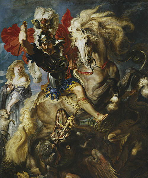 彼得·保羅·魯本斯(1577-1640) 巴黎羅浮宮博物館 彼得·保羅·魯本斯,一位在巴洛克美術(shù)中極具濃墨淡彩的佛蘭德斯畫家。他在年輕時,就已是一名虔誠的天主教徒,而反映到其作品上,我們可以看出宗教題材是其創(chuàng)作之主體。這幅《圣喬治斗惡龍》亦是如此,題材源于《圣經(jīng)》,是歐洲古壁畫及油畫常用的題材之一。圣喬治,原為天主教的一名戰(zhàn)士,因其屠龍的故事而被大為贊許,他身披鎧甲,乘著白馬,持著手中的阿斯卡隆槍,獵殺毒龍于地面,救下公主。而后,他也因之被尊為圣人,甚至成為英格蘭的守護(hù)神。 魯本斯的這幅畫,便將其之生動躍然紙上。畫面中心的騎兵(即可視為其筆下的圣喬治)似縱身騰起,將尖鋒直指惡龍,而此時的戰(zhàn)馬也好似猛然回首,堅(jiān)毅威然的目光直逼惡龍。騎兵、馬和惡龍構(gòu)成了看似穩(wěn)定的三角形構(gòu)圖,但在戰(zhàn)馬騰升的剎那,卻沖破了這浮有的框線。騎兵的熱血,戰(zhàn)馬的激昂,速寫性的筆法將強(qiáng)烈的情感寓于無限的動感中,好似早已打破那理性固有的寧靜,多了一份激情,多了一份浪漫主義色彩。這時,從畫面的左方灑入一束光,照亮了騎兵和戰(zhàn)馬,我們也就不由得跟隨它的引導(dǎo),走入畫的中心,走入了另一片世界。在這里,我們站著,仰望著,聆聽著,感受著一位真正“強(qiáng)者”來自心底的吶喊,它不是別人,正是斜跨于畫面之中央的戰(zhàn)馬,一匹有血有性的馬。它騰起的身軀,擺頭的姿態(tài),飄灑的鬃毛,構(gòu)成一條完美的曲線貫穿畫面。隨之,它原有的韻動,伴著惡龍和騎兵,揮灑出激昂的節(jié)奏,好似我們熟悉的《土耳其進(jìn)行曲》。伴有流動性曲線的它,也不失力量的展現(xiàn),魯本斯用細(xì)膩的筆法,剛勁的線條,色彩的對比及光感的塑造,打造出戰(zhàn)馬強(qiáng)健的肌肉。在這突顯的力量質(zhì)感,著實(shí)的體塊下,是一種內(nèi)心的奔騰,是一種戰(zhàn)馬精神的外放。再配上一雙凝厚有神的雙眼,吶喊著一種堅(jiān)毅的信念,一種威嚴(yán)的尊嚴(yán)。這就是戰(zhàn)馬,這就是馬,這就是凝練于它的精神。同時,魯本斯運(yùn)用強(qiáng)烈的明暗對比,呈現(xiàn)著熱烈的光感,好似卡拉瓦喬的繪畫風(fēng)格,從而譜寫出戰(zhàn)馬的莊嚴(yán)輝煌之氣,在它的威武陽剛之下,壓倒畫面底部陰晦的惡龍,激起人們內(nèi)心一次又一次震撼起伏的浪濤。就這樣,它,以一個主角的姿態(tài),向我們訴說著那段往事。 整幅畫,在艷麗的外殼下,戲劇性的畫面里,描繪著戰(zhàn)斗的激情,抒發(fā)著內(nèi)性的精神。這個故事本就傳達(dá)著直面的剛毅,正義的篤定,犧牲的不惜,而我們在魯本斯的筆下,在它的戰(zhàn)馬里,更看到了這一切。而這一切,本初也流淌在馬的血液里,也正屬于它們本體的一部分。它們,從骨子里散發(fā)著,這種執(zhí)著的堅(jiān)健,威武的陽剛,不屈的犧牲,向上的精神。而這也正是被人們不斷尊崇的,一種來自馬內(nèi)心的信仰,一種屬于它們的精神。 |