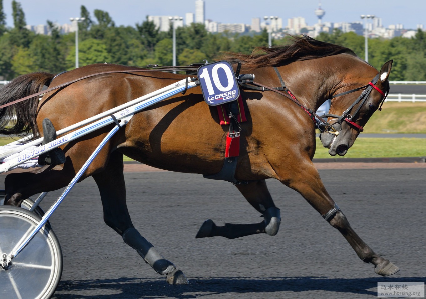 快步(trot),也稱“速步”,對角前后肢同時離地和著地,兩個蹄音。體軀側動小,顛動大,故老百姓稱專于走“快步”的馬為“顛馬”(學名“快步馬”或“速步馬”)。 對側步(pace),同側的前后肢同時離地和著地的步法,俗稱“走”,老百姓也稱“順拐走”或簡言之“順拐”,馬體左右側動大,上下顛動小,使騎者感到舒適,“走”也分“大走”、“小走”等。 法國快步馬屬于前者,美國標準馬中75% 屬于對側步馬,25% 屬于快步馬。 歷史 19 世紀初至中期,法國開始有選擇性地培育快步比賽用馬。法國快步馬最初是用英國純血馬、半血獵狐馬、諾福克輕駕車馬、美國標準馬與當?shù)氐闹Z曼馬雜交發(fā)展而來的,據(jù)資料記載也曾經引入過奧爾洛夫快步馬的血液。由于古代諾曼馬對其育種發(fā)展影響甚廣,法國快步馬有時也被稱為“諾曼快步馬”。 早期的快步馬比之今日遲鈍粗劣,與其諾曼底當?shù)伛R的祖先有很大的相似。但是純血馬血統(tǒng)的注入大大改良了此種馬匹。 最終建立了由五匹種馬而形成的五種優(yōu)良的快步馬血統(tǒng),它們是康克倫特(Conquerant)、諾曼底(Normand)、拉瓦特(Lavater)、輝騰(Phaeton) 和吊鐘花(Fuchsia)。其中,康克倫特(Conquerant)、諾曼底( Normand)均是來自半血馬楊·雷特爾(Young Rattler,產于1811 年),而楊·雷特爾的父親是純血馬雷特爾(Rattler),母親是具有諾福克快步馬血統(tǒng)的一匹母馬。由于“雷特爾”對法國快步馬的影響甚大,因此其被譽為“法國的Messenger”(注:美國標準馬的祖先也曾是一匹純血馬,叫梅森吉爾Messenger)。 吊鐘花(Fuchsia)也是早期卓越的種馬,生于1883 年,創(chuàng)造1000 米用時1 分36 秒的紀錄,曾育成400 多匹快步馬,有100 多個兒子成為了冠軍馬的父親,“吊鐘花”的兒子、孫子、重孫子中出現(xiàn)了很多優(yōu)秀的快步馬。為了避免近親交配,人們曾引入其他血統(tǒng)的馬更新血液。 法國快步馬曾有一個時期融入了美國標準馬血液,但盡管如此,法國快步馬仍保持著它不同尋常的快步,而未繼承美國標準馬的對側步。 法國快步馬是快步賽的極佳選擇,因其快步的速度幾乎可以達到純血馬疾馳的速度。一開始,法國快步馬比賽不是輕駕車,而是騎乘,特別是長距離的騎乘比賽。這使得法國快步馬擁有了強壯而有力的體格。第一次世界大戰(zhàn)之后,由于軍事必要性和大眾口味的變化,法國快步馬活動的主體從騎乘逐漸轉向輕駕車比賽。 品種特點 法國快步馬從四蹄到鬐甲高為1.55-1.75 米,重500-650 千克。毛色純,多為栗色,騮色或褐騮色、黑色。 快步馬育種是為實際用途,而不是出于審美目的。在此品種中有一些變種,其體質特征相異。但是總的來說它們有個趨同點,即頭部平直,略重且大,但這也很討人喜歡。 頸部長度適中,與肩結合良好,肩部傾斜有力。鬐甲渾圓,背寬而強健,后軀肌肉發(fā)達。四肢表現(xiàn)良好且強壯有力,關節(jié)發(fā)達,骨骼堅實,蹄質堅硬。法國快步馬的脾性是堅韌、安靜、溫順、聰穎、好勝。 法國快步馬是晚熟的,其運動生命很長,不僅2 歲就能展示出正式比賽的能力,而且如果馴養(yǎng)得當,10 歲或10 歲以上的法國快步馬仍然可以在參加各類比賽中保持穩(wěn)定的狀態(tài),展現(xiàn)出超乎尋常的活力。 現(xiàn)狀 雖然在法國境內各地都有法國快步馬的繁育馬場,但法國快步馬最重要的集中地主要在法國的西部,特別是諾曼底(Normandie)、馬耶訥(Mayenne)和布雷塔尼亞(Bretagne)。法國快步馬也是繼美國標準馬之后,世界范圍內繁育和交易最廣的輕駕車馬種。 法國快步馬的登記屬于封閉型,即只有父母均是登記注冊的法國快步馬,其幼駒才能登記。法國快步馬禁止使用人工授精。根據(jù)1861 年的法律,賽馬給予的獎金目的是專一的,主要是為了馬匹的育種,因此所有主要的賽事和最重要的錦標賽都只允許公馬或者母馬參加比賽,不允許騸馬或切除卵巢的母馬參加比賽。 法國快步馬可能是世界上數(shù)量最多的快步馬,母馬約17000 匹,種公馬650 匹,每年生11000 匹幼駒,其中為了傳種,給下一代合格發(fā)證的有3800 匹。根據(jù)2011 年的統(tǒng)計結果表明,有16565 匹法國速步馬的母馬與502 匹種公馬交配,有11601 匹新生馬駒注冊在法國速步馬血統(tǒng)登記簿上,4970 匹馬駒 ( 包括公駒和母駒) 通過資格賽,獲得正式賽馬比賽資格。 用途 法國快步馬在騎乘型和輕駕車型快步賽中均表現(xiàn)優(yōu)異,且步態(tài)尤為平穩(wěn)。但法國快步馬主要是用于輕駕車比賽,如今,只有10% 的法國快步馬不用于輕駕車比賽,而是用于騎乘比賽。最著名的騎乘賽事是在巴黎萬賽納(Vincennes)賽馬場舉行的 Prix de Cornulier,賽道長2700 米,總獎金70 萬歐元(按名次的獎金分配是:35 萬、17.5 萬、9.1 萬、4.2 萬、2.1 萬、1.4 萬、0.7 萬),2012 年馬匹Quif de Villeneuve 獲得冠軍,折合1000 米為1 分12 秒的紀錄。 世界最重要的輕駕車賽——美洲杯大獎賽(the Prix d'Amerique),舉辦地在法國巴黎萬賽納賽馬場,使用馬匹為法國快步馬,賽道長約2700 米,總獎金100 萬歐元,2012 年法國快步馬Ready Cash 獲勝,并創(chuàng)造1000米1 分12 秒的紀錄,全程用3 分14 秒49 毫秒。2013 年法國快步馬輕駕車比賽之美洲杯大獎賽,法國快步馬Royal Dream 創(chuàng)1000 米1 分11 秒9毫秒的新紀錄(合一英里1 分55 秒3 毫秒)。萬賽納賽馬場的跑道是起跑時下坡,終點時上坡,獨具特色。 法國快步馬在速