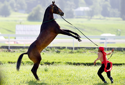 在中國最能讓你感受到速度賽馬的激情和盛大場面的地方莫過于新疆和內(nèi)蒙了,今年的6月11至12日,中國速度賽馬大獎(jiǎng)賽·那拉提站讓新疆伊犁這片天堂草原再次喧騰起來。天公作美,賽事期間那拉提草原的陽光毫無遮掩,清風(fēng)拂過,空氣里吸允著草汁的清新。 一早,賽場周邊已經(jīng)戒嚴(yán),遠(yuǎn)遠(yuǎn)近近的山坡上都停滿了各式的車輛,進(jìn)入看場的和沒能進(jìn)去的都在尋覓著最佳的觀賽區(qū)域。一待晨曦的涼意散去,賽事的溫度便很快升起?!爸袇R鑫源杯”、“野馬杯”、“玉龍杯”、“佳弘杯”、“東興杯”、“天山生物杯”,連翻上演,每場賽事的獎(jiǎng)金設(shè)置最低不下10萬 元。賽場上人馬奔馳,塵土飛揚(yáng),觀眾的歡呼聲駕著風(fēng)驚動(dòng)了整片草原。偶爾湊近了還能聽到聽不懂的熱烈討論和嘆息,眾多的哈薩克人在看比賽時(shí)會(huì)幾個(gè)人一伙押注,金額不高,幾十元足以收獲心滿意足的快樂。 賽場之外,新疆特色美食街有烤肉、酸奶、手抓飯、馬奶子等美食考驗(yàn)?zāi)愕亩?;騎乘體驗(yàn)區(qū)有各種俊俏溫順的馬任你選擇;長胡子的哈薩克族老人手臂上的蒼鷹,即便被遮住了耳目,那氣勢也不容你存絲毫輕侮之心;草原民族服飾攝影、猛虎駿馬模型都可謂小小的調(diào)味劑。 汗血寶馬賽場外的使命 當(dāng)主持人播報(bào)說汗血馬要出場了的時(shí)候,很多在周邊閑逛的觀眾小跑著過來一睹這傳說中的寶馬真身。最先沖出了霧障的一匹金色汗血馬,那華麗的身影足以贏得最熱烈的歡呼和掌聲。汗血馬是馬中的王族,而金色汗血馬更是王族中的至尊。 汗血馬承載了太多古老中國的文化背景,兩千多年前大漢武帝派張騫兩次出使西域,成功開辟了絲綢之路,汗血馬便與這條絲綢之路有了解不開的淵源。汗血之名源于《史記》,我們所說的汗血馬也就是土庫曼斯坦的國寶阿哈爾捷金馬。血統(tǒng)尊貴的汗血馬極少出現(xiàn)在賽場之上,它更多的使命是連接著我們和周邊國家元首之間、民族之間、個(gè)人之間的外交名片。 馬圈里眾多懂馬愛馬,依靠其他收入不計(jì)成本和回報(bào)地投入馬上事業(yè)的人們,深知馬帶給人的力量和精神氣質(zhì),義無反顧地承擔(dān)起振奮民族血性的責(zé)任。新疆野馬集團(tuán)擁有一百多匹汗血馬,實(shí)在讓人難以理解,一個(gè)商人何以會(huì)傻到這么多年堅(jiān)持一項(xiàng)毫無回報(bào)可言的投資。自稱為馬夫的野馬集團(tuán)老大陳志峰先生曾這樣解釋過,他希望通過汗血馬,讓草原人民更多地了解漢族文化,讓更多的國人回憶起我們源遠(yuǎn)的馬上文化、當(dāng)年的大漢雄風(fēng),記起我們也曾是一個(gè)鐵骨錚錚傲立世界的民族。與中亞國家的外交聯(lián)絡(luò),汗血馬比孔子學(xué)院更具魅力,他的責(zé)任就是要用汗血馬來為我們的陸上絲綢之路的規(guī)劃開辟出一條通途。 賽馬節(jié)標(biāo)配——叼羊 賽馬節(jié)的另一個(gè)的看點(diǎn)就是哈薩克族的傳統(tǒng)節(jié)目——叼羊。叼羊是中亞地區(qū)眾多游牧民族的一項(xiàng)最傳統(tǒng)、老百姓最喜聞樂見的娛樂活動(dòng),同時(shí)也是一項(xiàng)競技活動(dòng)。各地區(qū)會(huì)略有差異,不過都對(duì)參賽馬匹和人不設(shè)任何限制,賽事唯一的規(guī)則就是只搶一頭羊。據(jù)說哈薩克斯坦有一次叼羊活動(dòng),從 7 歲兒童到70多歲老人,總共有5000多人同時(shí)參與。草原上的哈薩克牧民每隔兩三天就會(huì)舉辦一次叼羊比賽,通常為慶?;槎Y和男孩女孩的成人禮(哈薩克族人男孩到了五六歲便會(huì)舉辦成人禮,形式為割禮,即割包皮;女孩是八九歲,形式為穿耳洞)。不過即便是沒有這樣的理由,搶到羊的哈薩克族人在“收拾了”這戰(zhàn)利品之后,過三天便要提供一頭活羊來繼續(xù)叼羊賽。 這樣有趣的體育項(xiàng)目,如果稍加規(guī)范和改良,是否可能發(fā)展成為一項(xiàng)全民熱衷的體育項(xiàng)目?采訪的那位哈薩克族牧民堅(jiān)定地回答,他們是不可能接受這樣的改良的,這是他們民族的傳統(tǒng),對(duì)于任何一個(gè)民族來說都沒辦法接受這種改良。 賽后哈薩克族人們圍坐在一起,聊著他們的愛馬。伊犁馬擅長耐力賽,能參加 1-5萬米耐力賽。他們這些勤勤懇懇的伙計(jì),聽話、好養(yǎng)又實(shí)用,不論是放牧還是遠(yuǎn)行,它們都是哈薩克族人最好的伙伴?;蛟S對(duì)于草原上與馬密不可分的人們來說,汗血馬在他們心里也許就像是牡丹,尊貴而遙遠(yuǎn),而伊犁馬就像那漫山遍野即將盛放的野油菜花,時(shí)時(shí)給他們美的陪伴。 祖龍局長談新疆馬產(chǎn)業(yè) 這次的賽馬節(jié)可稱得上是草原馬文化、馬產(chǎn)業(yè)的一個(gè)掠影。新疆體育局局長祖龍·克里木先生,人稱“老班長”,剛參加完賽馬節(jié),皮膚被曬成了紅白相間的顏色,不過怎么樣都保持著草原民族的親和力。通過老班長的介紹,可見一個(gè)新疆賽馬產(chǎn)業(yè)大致的全景。 新疆主要擁有13個(gè)民族,其中除漢族外的12個(gè)民族都是馬背民族。馬上項(xiàng)目包括速度賽馬、賽走馬、跑馬式哈達(dá)、跑馬拾銀、姑娘追、叼羊、跑馬射箭等等。過年過節(jié),小孩的成人禮等各種活動(dòng)首先就要舉行賽馬活動(dòng)。 馬背民族有一個(gè)諾魯孜節(jié),整個(gè)中、西亞,像