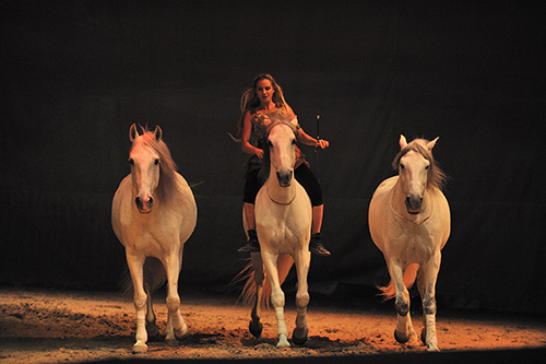 在白色的移動城堡里,人與馬演繹著一幕幕從遠古洞穴到草原、沙漠、叢林,從古老的東方到夢幻史詩般的歐洲川澤原野的世代情緣?!禖avalia 舞馬》就是這樣為身在高樓林立的都市,渾噩間常不知生亦何歡的人們送去了一點慰藉,引你去探尋生命本真的道路。 生活不止眼前的茍且,還有詩和遠方?,F(xiàn)實也許會困住我們的腳步,不過夢的空間是無限的。就在北京的朝陽公園,圓核經典就為我們造了一場人與馬的夢境。 這一次的造夢來源于一年多前圓核經典董事會主席陳澤盛先生在新加坡偶然觀看的一場《Cavalia·舞馬》的演出。他立即被其中所展現(xiàn)出的人與自然、人與動物間的愛和美所感動,所震撼。這種透過人與馬的情感交流而進行的藝術化互動,就像一縷光照進了精神的家園,帶給人以希望和振奮?!拔沂莻€占有欲很強的人,那一刻有個閃電般的沖動從我腦中劃過,形成了一道光,這道光就是我和《Cavalia·舞馬》談判的動力,我覺得自己有義務引進這樣精神價值高、主題健康的藝術作品?!苯涍^了漫長而艱難的談判,Cavalia的創(chuàng)始人Normand終于同意將版權賣給圓核經典,于是我們今天便能夠在北京走進這個夢境,慰藉那對于詩和遠方的惦念。 在白色的移動城堡里,人與馬演繹著一幕幕從遠古洞穴到草原、沙漠、叢林,從古老的東方到夢幻史詩般的歐洲川澤原野的世代情緣。 夜深人靜之時,清揚的音樂聲里,小女孩懷中的木馬悄然入夢,幻化成兩匹白馬,披著一身光明?!鞍?!多么美的生靈!讓我擁有你吧,我從不淘氣?!比伺c馬就這么在夢中相遇了。馬是自由的精靈,小女孩是天使的化身,那份親昵會讓上帝都妒忌。 在久遠的歷史中,馬與人真正的相遇早已記錄在了遠古的洞穴里:漠漠黃沙,一群野馬,覺識了的人類,正釋放征服者的欲望。野馬怎會輕易屈從?但只要你能,神祗的預言里,早已寫下了人與馬的命運歸屬。不知經歷了多少春秋,又跨越了幾方大陸,在非洲的密野叢林之中,伴著咚咚鼓響,原始的人類無畏、狂放。大地之上,人與馬是野蠻的兄弟兩個,彼此助長生命的能量。在文明的啟蒙階段,是神話豐滿了人類生存的意念:渺遠星空,傳來天籟,神女仿佛隱約在繁星之間。兩位仙子,橙衫、紫衣,白馬騎士是她們的愛侶??罩械孽滠],馬上的依戀,愛情那般美妙,時光也會不忍去打擾吧。 春夏秋冬,季節(jié)輪回,不變的是人與馬的一路相隨:一群白色的阿拉伯馬,仿若林中快樂的精靈,森林王子的一個眼神,它們就會乖乖排好隊形;紛紛白雪落滿衣,仙子們在雪中起舞輕盈,播散春日的訊息;小溪中落下了馬兒的倩影,騎著駿馬的男男女女,怎能藏得住那顆悸動的心;又或許是到了精靈王國的秘境,山野湖沼間,都釋放著自由的氣息,人與馬都仿佛籠罩了光暈,又一起加入到水澤中的嬉戲。 還有古羅馬時代的英雄,立馬拉韁,連番越障,張揚著僨張的豪氣;吉普賽的野孩子在大笨馬的背上盡情撒潑;那個西部牛仔,你一看到他就會忍不住發(fā)笑;還有敦煌仙女的飛升,漢唐五花馬的繁盛,牛仔的狂野……你會被感動,會迷戀上有馬為伴的情景。 《Cavalia 舞馬》就是這樣為身在高樓林立的都市,渾噩間常不知生亦何歡的人們送去了一點慰藉,引你去探尋生命本真的道路。 曾記得電視劇《漢武大帝》中有一個場景:武帝帶著獵隊誤將上林苑里的馬當成野馬射殺了,衛(wèi)青趕過來跪倒在地,顫抖著雙手為馬包扎著傷口,憤恨地一遍遍大叫“漢朝人沒希望了,漢朝人不愛自己的馬,不愛自己的女人,漢朝人沒希望了,沒希望了!”這身嘶力竭的叫罵,不僅喚醒了武帝,也喚醒了多少觀眾。隱約間歷史總在一遍遍重演??萍嫉陌l(fā)展讓現(xiàn)今的人們有太多的途徑可以輕而易舉地接觸到各樣的言論、認知、文化、思想,而人們卻越發(fā)找尋不到足以信奉的人生教條。 有時候我們想,勤勞、善良、樸實、真誠,這些美好的德行也都是讓人尊敬的,可是為何偏偏少了一種讓人敬畏的大氣?恭敬自持,謙謙君子之風都是千百年來的傳承,不過人的骨血里終究還殘留著原始的野性。人性不足論,因為實在有太多的悲哀和爭議。禮教的規(guī)訓無疑能夠讓社會和諧,長幼有序,不過內心里或多或少會缺失了這種對于豪邁的釋放的灑脫。 在草原曠野上馳騁,與馬為伴的狂野和自由所匯聚起來的騎士精神,應該是一種源于對真正的瀟灑和尊嚴的推崇?!独菆D騰》中極力宣揚著人類的輝煌時代都曾遵從著狼性圖騰,可惜了農耕文明的溫床,將那野性逐漸消磨了。不過發(fā)展至今,私以為人類當更應該遵從馬性,一舉一動,一俯首,一投足,便能給你無可輕視的尊嚴,于無聲處彰顯不容踐踏的高貴,于低調中保持著和諧與平衡,這才是現(xiàn)代文明社會該有的風尚。無拘無束,也可以在風度和有禮中實現(xiàn)。我即便聽從于你,受你指揮,可這指揮也不曾降低了我生而獨立的思想和存在的價值。 “我坦率地稱,我所有的那一點點有價值的知識,全都是我受主人的教誨以及我聽它跟它的朋友們談話而得來的;我聽它們談話比聽歐洲最偉大、最聰明的人在集會上發(fā)表演講還要感到自豪。我欽佩這個國家的居民身強力壯、體態(tài)俊美、行動迅捷;這么可愛的馬兒,有著燦若群星的總總美德,使我對它們產生了最崇高的敬意。”這是英國作家喬納森·斯威夫特在作品《格列佛游記》慧骃國的故事中描寫的一段話。讀到這里,情感似乎