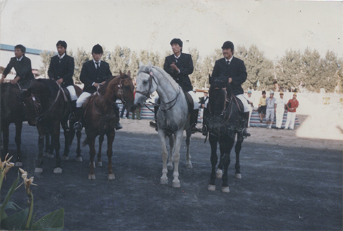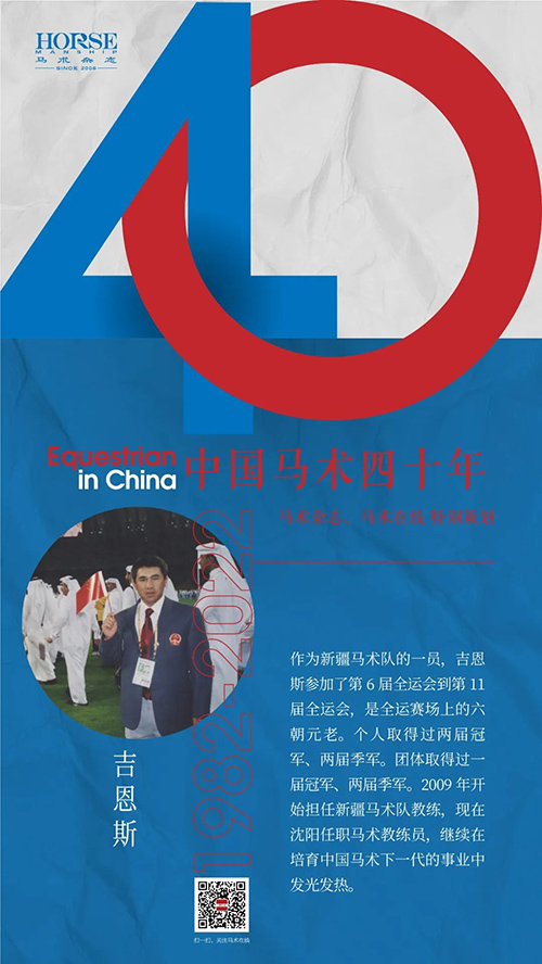 1982年12月8日,中國馬術協(xié)會成為國際馬術聯(lián)合會正式成員,自此中國馬術邁出了重要的一步。至2022年,中國的馬術運動已歷經(jīng)四十年風風雨雨。《馬術》雜志推出《中國馬術四十年》特別策劃,講述那些為中國馬術做出貢獻的人物故事。時光易逝,彩云易散,縱然歷史的車輪滾滾向前,我們依舊能在時光的車轍中,找到值得我們銘記的那些人、那些事。 吉恩斯出生于1968年,從小就在新疆伊犁昭蘇縣燈塔牧場生活。打記事起,就隨著父母騎在馬背上放牧牛羊,那時候,昭蘇草原上的草長得跟馬一樣高…… “我從小體育就不錯,打籃球、摔跤項目都很好。1982年的時候,我們學校的體育老師就前往內蒙古參加過馬術培訓班。1983年,伊犁正式成立伊犁馬術隊,體育老師就推薦了我去?!币晾珩R術隊當時共招收20多名學員,包括吉恩斯、多里坤等在內。 當時的吉恩斯已經(jīng)初中畢業(yè),15歲,算得上是隊里最大的學員了。那個時候的他對場地障礙完全不懂,之前只接觸過速度賽馬,他對馬術障礙項目的定義是跳過障礙就可以。而那時新疆的馬術教師以及馬術資源相對缺乏,教學體系也不系統(tǒng)。不單單是吉恩斯,其他學員也是一樣,基本的概念也不清楚,稀里糊涂地,就從一名速度賽馬騎手轉型成了一名場地障礙騎手。 1986年,新疆、新疆軍區(qū)、山東、內蒙隊等馬術隊,共計20多位騎手,參加在呼和浩特舉辦的全國錦標賽,吉恩斯獲得個人第二 吉恩斯的第一場馬術比賽 “到現(xiàn)在,我還記得我參加的第一場比賽?!贝蠹s在伊犁種馬場集訓了三個月,1983年9月,我們便去內蒙古呼和浩特市,參加了為期兩天的“五單位邀請賽”。邀請單位包括內蒙古隊、新疆隊、新疆軍區(qū)隊、甘肅隊和山東隊。共有12匹馬,24名騎手參賽。 這是全國第一場場地障礙比賽。那個時候的比賽場地,障礙并不太高,障礙架的托杯等也不像現(xiàn)在這樣穩(wěn)定,賽場鋪設的是沙子,而不是現(xiàn)在大多數(shù)場地使用的纖維沙。 比賽以抽簽的方式進行。“很幸運我抽到了內蒙隊騎手孟克的馬,它是當時參賽馬匹里面最好的馬了,然后順利地拿了個人冠軍的成績回來?!?/div> 1994年10月,吉恩斯代表中國國家隊參加日本廣島亞運會 回到昭蘇縣后,馬術隊從伊犁種馬場購買了伊犁馬,是4歲的年輕馬,并進行調訓,1984年參加了新疆烏魯木齊舉辦的全國錦標賽。1985年,新疆隊去內蒙古參加了比賽。1985年的8月份,新疆隊又去了山東養(yǎng)馬島,在那里,由英國馬術教練給他們進行了為期一個月的集訓?!澳菚r候,我才算知道了一些有關馬術場地障礙項目的事?!?/div> 1987年第6屆全運會,因為新疆隊的整體實力還是較弱,并沒有獲得獎牌。轉折點發(fā)生在1991年,新疆隊前往吉爾吉斯進行訓練?!皬哪菚r起,我才真正開始系統(tǒng)地學習馬術。我了解到了馬術運動場地障礙、盛裝舞步、三項賽三個項目各自所需要的訓練內容和訓練方式,也對馬匹福利慢慢有了自己的理解。1993年第8屆全運會上,新疆隊包攬4枚金牌,打了一個漂亮的翻身仗,我更是獲得了場地障礙團體和個人的雙冠軍。” 1998年11月,吉恩斯作為國家隊一員出征泰國曼谷亞運會 吉恩斯的兩匹馬 提起馬,吉恩斯變得滔滔不絕?!澳菚r候,我們從國外引進了幾匹馬。我的第一匹馬叫‘熱凱霞提’?!薄盁釀P霞提”是一個俄語音譯過來的名字,中文意思是把子彈打出去,速度非常快,快如閃電。 這匹馬跟著吉恩斯參加了三屆全運會,1993年七運會拿到團體、個人雙冠,就是吉恩斯與這匹馬搭檔。第8屆全運會,這匹馬與吉恩斯拿到了個人和團體季軍。在第9屆全運會中,吉恩斯將馬給了多里坤的弟弟努拉合買提騎乘,年僅21歲的努拉合買提騎著比自己還要大兩歲的“熱凱霞提”,一人一馬發(fā)揮出色?!盁釀P霞提”依舊老當益壯,如同一匹賽場上的黑馬,驚艷了所有人。比賽結束,“熱凱霞提”和努拉合買提獲得了馬術場地障礙比賽團體第二名、個人第五名的好成績。 1998年12月,泰國曼谷亞運會作為國家隊一員,國家隊獲得團體第五 當被提問年齡較大的馬匹如何訓練時,吉恩斯表示,“為了防止馬太過勞累,不敢多練?;旧弦云降赜柧殲橹?。‘熱凱霞提’活到了25歲,它一輩子也沒什么病癥,一直都健健康康的,直到去世?!?/div> 2000年于韓國的亞洲馬術比賽 第二匹馬名叫“沙特龍”,是當時吉恩斯在吉爾吉斯訓練時的教練,拉吉克陪著他前往莫斯科購買的?!吧程佚垺笔且黄W爾洛夫馬,可以跳1.50M全程。購買時,“沙特龍”9歲,陪伴吉恩斯參加了第9屆全運會?;貞泚淼?001年11月10日下午,廣州黃村正在進行九運會馬術障礙項目個人賽的最后一輪角逐。新疆隊騎手吉恩斯騎乘“沙特龍”最后一對出場,當他以一連串完美跳躍完成比賽時,全場爆發(fā)出一陣壓抑已久的歡呼聲。身著紅色騎士服的吉恩斯策騎“沙特龍”,高高揮起右臂,向給他助威吶喊的人們致謝,夕陽西下,九運會馬術場上灑滿了金輝。 2001年廣州全運會,吉恩斯獲得個人冠軍,李振強第二,女騎手陸偉第三 除了個人冠軍,“沙特龍”還跟著吉恩斯拿到了團體第二。第10屆全運會“沙特龍”再次跟吉恩斯搭檔拿了個人季軍。第11屆全運會,新疆隊騎手木拉得力騎乘了這匹馬,這匹馬當時已經(jīng)20歲了,拿到了團體第四名?!吧程佚垺弊詈蠡畹?0歲,在馬房里去世。 這兩匹馬壽命相對較長,且在這么大的年紀依舊能夠上場比賽,