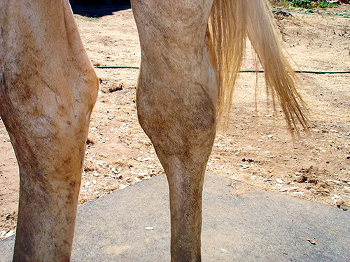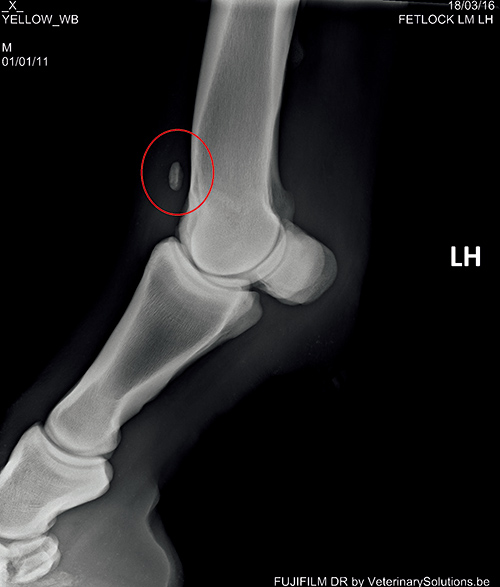 馬剝脫性骨軟骨炎 (OCD) 很多馬場主、馬主曾遇到過這種情況:自己的馬匹出現(xiàn)關(guān)節(jié)腫脹、跛行的癥狀。獸醫(yī)檢查后確診是關(guān)節(jié)炎,關(guān)節(jié)里有軟骨碎片。他們覺得很奇怪,明明運(yùn)動(dòng)沒有過量、也沒磕到碰到,怎么就得關(guān)節(jié)炎了呢?還治不好(目前在國內(nèi))。這個(gè)無妄之災(zāi)是馬兒在娘胎里就帶來的疾病——?jiǎng)兠撔怨擒浌茄?,英文簡稱為 OCD。 正常情況下,在馬駒1歲左右時(shí)隨著骨骼的發(fā)育,部分軟骨通過軟骨骨化轉(zhuǎn)為骨密質(zhì)。但患剝脫性骨軟骨炎的馬匹的軟骨骨化不完全。發(fā)育異常的軟骨會(huì)存在于關(guān)節(jié)中,成為骨關(guān)節(jié)疾病的潛在病因。這種缺陷會(huì)導(dǎo)致病變軟骨無法貼合骨密質(zhì),甚至有軟骨碎片掉落殘留在關(guān)節(jié)囊內(nèi),不斷刺激關(guān)節(jié),引起炎癥和關(guān)節(jié)腫脹。 OCD的癥狀 關(guān)節(jié)腫脹是剝脫性關(guān)節(jié)病的典型癥狀。如上圖,馬匹左后肢關(guān)節(jié)囊內(nèi)嚴(yán)重的炎癥反應(yīng)造成大量關(guān)節(jié)液積聚于關(guān)節(jié)腔內(nèi)。 跗關(guān)節(jié)部腱鞘炎是最常見的,患病部位會(huì)嚴(yán)重腫脹。但事實(shí)上其并沒有看起來的那么嚴(yán)重。其他患病部位如飛節(jié)、后膝關(guān)節(jié)等盡管癥狀相對(duì)沒那么明顯,對(duì)馬匹的影響卻更嚴(yán)重。需及時(shí)請(qǐng)獸醫(yī)做進(jìn)一步的檢查和治療?;疾●R匹可能出現(xiàn)跛行,但跛行程度常發(fā)生變化。馬匹臥地休息后不愿意起來或站立困難等。此外還可能出現(xiàn)異常站姿、活動(dòng)量減少、動(dòng)作不自然等癥狀。 診斷和治療臨床獸醫(yī)可以通過臨床癥狀作出初步診斷。確診需要做 X 線片檢查。 例如上圖中紅圈內(nèi)是一塊很明顯的游離于球節(jié)的骨軟骨碎片??梢圆捎藐P(guān)節(jié)鏡做進(jìn)一步檢查,以確定關(guān)節(jié)的損傷程度,并通過微創(chuàng)手術(shù)去除軟骨碎片,如上圖。在國外,馬主通常會(huì)在馬匹三、四歲的時(shí)候請(qǐng)獸醫(yī)做一次全面的 X 線片檢查來評(píng)估它們的關(guān)節(jié),一旦發(fā)現(xiàn) OCD,及早進(jìn)行手術(shù)能最大程度減少其對(duì)關(guān)節(jié)的損傷,保住馬兒未來的運(yùn)動(dòng)生命。 并非所有OCD患病馬匹都會(huì)表現(xiàn)出臨床癥狀。許多馬匹到達(dá)成年以后,在接受體檢時(shí)通過 X 線片檢查才被發(fā)現(xiàn) OCD,但這個(gè)時(shí)候關(guān)節(jié)鏡手術(shù)治療的意義已經(jīng)不大,因?yàn)殛P(guān)節(jié)已經(jīng)受到損傷,而且這種損傷是不可逆的。 當(dāng)馬匹在交易前體檢發(fā)現(xiàn)存在OCD,情況則會(huì)變得很復(fù)雜。作為獸醫(yī),很難去作出一個(gè)讓交易雙方都滿意的治療建議以及預(yù)后判斷。他需要考慮很多方面的因素,如馬匹的病歷記錄、運(yùn)動(dòng)表現(xiàn)、病變部位等。此外,慢性 OCD 還是造成老齡馬匹跛行的重要病因。這是因?yàn)殚L期的關(guān)節(jié)炎癥最后很有可能發(fā)展為關(guān)節(jié)炎。 獸醫(yī)會(huì)根據(jù)馬匹自身情況、臨床癥狀不同以及病情輕重制定治療方案。此外,還需考慮馬匹年齡和它之后的發(fā)展計(jì)劃。因此,最好能咨詢獸醫(yī)骨科專家,他會(huì)告訴你不同治療方案的利與弊。 文、圖/彭煜師 |