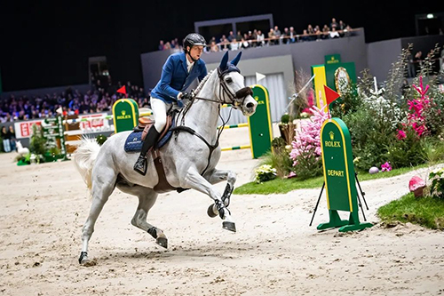 麥克萊恩·沃德策騎“HH Azur”?Rolex/Ashley Neuhof McLain Ward: “這就是我們的生活,我們以此為生,我的夢想成真了?!泵绹T手麥克萊恩·沃德(McLain Ward)在贏得2022年日內(nèi)瓦國際馬術(shù)節(jié)勞力士大獎賽后,難掩激動之情。在要求敏捷性、速度和冒險的路線上,麥克萊恩·沃德搭檔“HH Azur”比2021年日內(nèi)瓦國際馬術(shù)節(jié)勞力士大獎賽獲勝者、勞力士代言人馬丁·福斯(Martin Fuchs)和他的搭檔“Leone Jei”快了一秒多。 日內(nèi)瓦當(dāng)?shù)貢r間2022年12月11日下午2點半,萬眾矚目的Rolex Grand Prix勞力士大獎賽開始上演。遠(yuǎn)在日內(nèi)瓦8210公里外的北京,正在同步直播。 日內(nèi)瓦馬術(shù)節(jié)場地障礙賽大滿貫Rolex Grand Prix由《馬術(shù)》雜志、馬術(shù)在線于中國馬術(shù)四十年之際特別策劃獨家引進(jìn)網(wǎng)絡(luò)直播版權(quán),北京市馬術(shù)運(yùn)動協(xié)會、深圳市馬術(shù)協(xié)會、金伯樂馬術(shù)學(xué)府、天星調(diào)良馬術(shù)、西塢馬術(shù)支持播出。本場直播回饋互動觀眾的馬術(shù)裝備由驛樂馬術(shù)提供。 著名音樂人、全運(yùn)會馬術(shù)冠軍騎手欒樹和東京奧運(yùn)會場地障礙賽騎手、中國國家馬術(shù)隊騎手張興嘉作為解說嘉賓,深入淺出地為線上觀眾帶來了馬術(shù)文化及禮儀、比賽規(guī)則、騎乘技術(shù)等方面的分析。 本次直播的發(fā)起單位代表,《馬術(shù)》雜志創(chuàng)始人、主編李艷陽談及本次直播的意義時表示:“在中國馬術(shù)四十年之際,我們作為馬術(shù)行業(yè)里的一份子,希望為行業(yè)做一些事。日內(nèi)瓦國際馬術(shù)節(jié)是每年冬天全球馬術(shù)的焦點,今年已經(jīng)舉辦第61屆了,它兼具傳統(tǒng)與創(chuàng)新,它是世界上最好的賽事之一。引進(jìn)日內(nèi)瓦國際馬術(shù)節(jié)場地障礙大滿貫賽事的直播,無疑會為中國的馬術(shù)行業(yè)帶來新的活力,為辦賽者創(chuàng)造全新的思路,為馬術(shù)愛好者們帶來了一場視覺上的盛宴?!?/div> 讓我們回顧比賽當(dāng)天跌宕起伏的過程。在勞力士大獎賽之前,“Clooney 51”經(jīng)歷了激動人心的告別時刻。在8000名觀眾面前,馬丁·福斯深情地訴說他和“Clooney 51”的故事。 瑞士騎手、勞力士代言人馬丁·福斯 在2022年日內(nèi)瓦國際馬術(shù)節(jié)“Clooney 51”的退役儀式 ?Rolex/Ashley Neuhof 40對人馬組合參加首輪比賽,其中有16位騎手目前世界排名前二十。路線設(shè)計師杰拉德·拉赫特(Gérard Lachat)和路易斯·科尼克克斯(Louis Konickx)面臨的挑戰(zhàn)就是既要考慮創(chuàng)造挑戰(zhàn),公正地篩選出冠軍,還要照顧到現(xiàn)場觀眾的體驗。14道障礙,18次跳躍,雙重組合利物浦障礙是當(dāng)晚最具挑戰(zhàn)性的難點之一?!拔抑坝悬c擔(dān)心,因為這道雙重組合障礙接雙橫木本來應(yīng)該篩選掉部分人馬組合的。但是騎手們的表現(xiàn)驚艷到我了,直到比賽結(jié)束,沒什么人在那道雙橫木上出問題?!苯芾隆だ仗乇硎?。 瑞士騎手、勞力士代言人馬丁·福斯策騎“Leone Jei” 在2022年日內(nèi)瓦國際馬術(shù)節(jié)勞力士大獎賽上獲得亞軍 ?Rolex/Peggy Schroeder 其他障礙代替了第7道障礙,例如勞力士三重組合障礙中的第二跳以及第13道雙重組合障礙。第一輪比賽結(jié)束后,13對人馬組合零失誤完賽。這其中有很多耳熟能詳?shù)拿郑河T手本·馬赫(Ben Maher),德國騎手、勞力士代言人丹尼爾·杜瑟(Daniel Deusser)、德國騎手安德烈·蒂姆(Andre Thieme)和美國騎手麥克萊恩·沃德(McLain Ward),當(dāng)然還有馬丁·福斯,他總在自己的家鄉(xiāng)、在眾多粉絲的見證下超越自己。 史蒂夫·戈爾達(dá)(Steve Guerdat)和未來的超級巨星、年僅9歲的“Dynamix de Belheme”未能進(jìn)入附加賽,雙重組合利物浦障礙給他們造成了困難。第13道雙重組合障礙也是具有決定性意義的,瑞典騎手亨里克·馮·埃克曼和“King Edward”以及法國騎手朱利安·埃帕拉德(Julien Epaillard)和“Caracole de la Roque”均折戟于第13道雙重組合障礙。 愛爾蘭騎手沙恩·斯維特蘭搭檔“James Kann Cruz” 在2022年日內(nèi)瓦國際馬術(shù)節(jié)勞力士大獎賽上獲得季軍 ?Rolex/Peggy Schroeder 附加賽中,丹尼爾·杜瑟策騎“Scuderia 1918 Tobago Z”速度很快,率先以零罰分完賽。但他沒有考慮到比利時騎手吉爾斯·托馬斯(Gilles Thomas)的天賦,他在秋天的云杉草地大師賽上表現(xiàn)出色。這次,他搭檔“Calleryama”擊敗了其他經(jīng)驗豐富的騎手,領(lǐng)先丹尼爾·杜瑟和“Scuderia 1918 Tobago Z”近兩秒。 愛爾蘭騎手沙恩·斯維特蘭(Shane Sweetnam)搭檔“James Kann Cruz”以40.48秒的成績完賽,他的整個團(tuán)隊都為他歡呼。馬丁·福斯和“Leone Jei”像羅馬時代的角斗士一般出場,觀眾們高喊“Allez(加油)”。鈴聲響起,整個Palexpo大廳登時安靜下來了。如果馬丁·福斯再次取得勝利,他將歷史性地蟬聯(lián)日內(nèi)瓦國際馬術(shù)節(jié)勞力士大獎賽三連冠。這對人馬組合的用時首次突破40秒。 法國騎手、勞力士代言人凱文·斯托特搭檔“Dialou Blue Ps” 在2022年日內(nèi)瓦國際馬術(shù)節(jié)上 ?Rolex/Peggy Schroeder 在馬丁·福斯之后,只剩下兩對人馬組合。丹尼爾·布魯曼(Daniel Bluman)未能實現(xiàn)兩輪零罰分,全場只剩下麥克萊恩·沃德和“HH Azur”。這匹16歲的母馬被美國人稱為“真正的女王”。她今年參加了七場