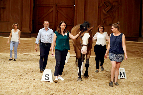 馬像一面鏡子,能反映出人的行為。在人與馬無言的接觸中,存在著各種感覺的交流。近年來隨著時(shí)代的發(fā)展,馬因?yàn)槠渎敾勖舾械奶刭|(zhì),被賦予了更多社會(huì)功能。 馬術(shù)輔導(dǎo) Equi-coaching Equi-coaching(馬術(shù)輔導(dǎo))發(fā)源于美國,現(xiàn)在在歐洲非常流行。Equi-coaching主要面向企業(yè)人員,以馬作為媒介做團(tuán)隊(duì)建設(shè)。所有訓(xùn)練都在馬下進(jìn)行,參與者通過觀察馬匹、小組游戲等方式鍛煉和發(fā)展學(xué)習(xí)者的“軟實(shí)力”。 “Academie Equicoaching”是法國一家專門為企業(yè)和個(gè)人做Equicoaching訓(xùn)練的公司?!癆cademie Equicoaching”的負(fù)責(zé)人,同時(shí)也是心理專家的 Laurence Flichy 女士告訴我們,選擇馬和參與者配合做輔導(dǎo)訓(xùn)練,是因?yàn)樽怨乓詠眈R是生長在野外的群居動(dòng)物,對危險(xiǎn)的反應(yīng)強(qiáng)烈,性格十分敏感。同時(shí)馬匹在生活環(huán)境上又和人類基本一致,因此人類很容易和馬匹找到共鳴?!榜R可以輕松懂得什么是人們要求做的,相比其它動(dòng)物,人們也更容易接受馬匹做出的反饋。馬匹也沒有偏見,因此參與者能得到他們誠實(shí)的反饋。馬就像一面鏡子,能反射出人的行為?!?Laurence 說道。 在馬匹的選擇上,Equi-coaching偏好選擇性格安靜,反應(yīng)自然的馬匹。通常來說,一次訓(xùn)練會(huì)使用4匹馬,每匹20分鐘,參與者由10-12人組成一個(gè)小組。Laurence 強(qiáng)調(diào),因?yàn)椴恍枰T乘,做Equi-coaching訓(xùn)練并不需要任何馬術(shù)背景。據(jù)她統(tǒng)計(jì),有80%參加訓(xùn)練的人從沒有接觸過馬,30%的參與者甚至對馬有恐懼感。“我們會(huì)在訓(xùn)練的第一天和參與者溝通。事實(shí)上,第一天與馬接觸后,基本上所有人都喜歡上了馬,愿意繼續(xù)訓(xùn)練。 據(jù)Laurence介紹,人們可以通過在富有經(jīng)驗(yàn)的教練的帶領(lǐng)下,通過與馬接觸,感受彼此的直接反饋,學(xué)習(xí)到以下能力: