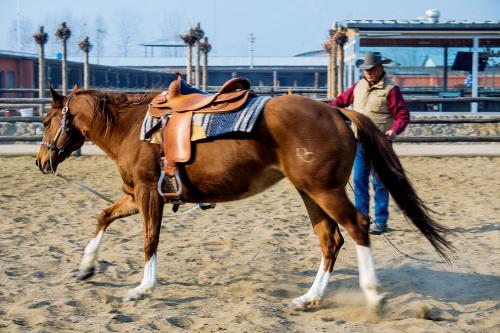 在討論了正確的牽行之后,今天我們和大家分享一下“打圈”的相關(guān)知識(shí)。當(dāng)然,地面工作并不僅僅只有牽行和打圈這兩部分,但這兩部分是馬術(shù)愛好者在學(xué)習(xí)馬術(shù)的過程中必須要經(jīng)歷的工作程序。所以我們的“地面工作”的討論就暫時(shí)將這兩項(xiàng)作為內(nèi)容組成部分。 那么,什么是打圈呢?我們知道,打圈的功能很多,尤其在馬匹調(diào)馴的初期,打圈是建立人馬合理關(guān)系的有效手段。而馬術(shù)學(xué)員在騎乘前的打圈,我們稱之為“熱身打圈”。這里就要特別提出一個(gè)概念,打圈到位的標(biāo)準(zhǔn)是什么?熱身打圈,不僅僅是讓馬活動(dòng)活動(dòng),而更重要的是讓馬匹做好工作前的準(zhǔn)備。那么馬匹情緒就是至關(guān)重要的衡量打圈是否到位的指標(biāo)。幾個(gè)關(guān)鍵詞是:安靜、積極、輕松、專注、對(duì)騎手的指令反應(yīng)及時(shí)而準(zhǔn)確。 騎乘前的打圈 目標(biāo)