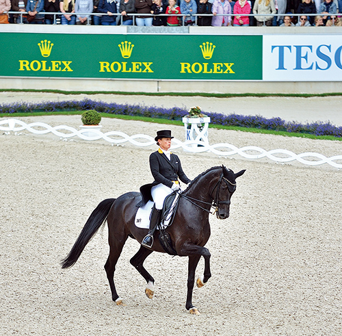收縮(Collection)是指馬匹后肢承載大部分體重。在未經(jīng)調(diào)教的自然狀態(tài)下,馬的前肢大約負(fù)載了三分之二的體重,而后肢僅承擔(dān)三分之一的體重。這是因?yàn)樵谧匀粻顟B(tài)下,馬的后肢主要扮演著“驅(qū)動(dòng)”的角色,而前肢則主要發(fā)揮“支撐”和“剎車”的作用。但在高級(jí)別中,我們要求馬匹以其四肢平均承載它自己以及騎手的重量,以便減輕前肢的負(fù)擔(dān)、達(dá)到前肢輕揚(yáng)的目的。 當(dāng)馬匹收縮時(shí),全身的重心后移、后軀關(guān)節(jié)下壓、后肢的飛節(jié)和球節(jié)也更為彎曲,因?yàn)槿绱笋R的后軀才能承載更多的重量。從側(cè)面看,馬的整個(gè)體型“縮短”了,而其前軀、頸部和頭部則較未收縮前明顯提高,整個(gè)馬看起來是在“上坡”的感覺。此時(shí),馬的步伐縮短,但其韻律、活力與前進(jìn)氣勢(shì)卻沒有絲毫改變,因而步態(tài)顯得更加輕盈。 就整體外觀而言,馬體此時(shí)呈現(xiàn)收縮的狀態(tài)——馬背圓潤(rùn),微微隆起;后肢有力地深踏至馬腹下,關(guān)節(jié)彎曲;后軀收縮下壓而前軀輕揚(yáng);馬的頸部彎曲,項(xiàng)部拱起,使得整匹馬看起來非常的悅目。 在運(yùn)動(dòng)表現(xiàn)上,此時(shí)馬匹的步幅縮短,但是動(dòng)力增強(qiáng),整匹馬身體柔軟、活力盎然而步態(tài)輕揚(yáng)。例如在高質(zhì)量的收縮下,馬可以做出原地踏步的高難度動(dòng)作,跑步可以做出 360 度以上的定后肢旋轉(zhuǎn)。 和其它基本訓(xùn)練一樣,馬匹的收縮訓(xùn)練需要循序漸進(jìn)——首先應(yīng)確認(rèn)馬匹的韻律、柔軟、聯(lián)系、動(dòng)力和正直性,然后才能展開收縮的訓(xùn)練。特別注意的是正直,如果馬不正直,其后肢無法均勻地向體下踏深,自然也就無法平均分擔(dān)從前肢轉(zhuǎn)移過來的重量。此外,前進(jìn)氣勢(shì)的維持也非常重要。每一次正確的收縮都蘊(yùn)含著充沛的前進(jìn)氣勢(shì),可以馬上在收縮和伸長(zhǎng)之間做轉(zhuǎn)換,這也是馬匹是否正確執(zhí)行了收縮動(dòng)作的檢驗(yàn)標(biāo)準(zhǔn)。 具體來說,收縮或后肢負(fù)重的產(chǎn)生,也正是將馬后肢的動(dòng)力轉(zhuǎn)化為承載重力的過程。 有助于訓(xùn)練收縮的運(yùn)動(dòng),包括頻繁的移行、連續(xù)的半減卻,以及所有鼓勵(lì)馬后肢負(fù)重的運(yùn)動(dòng),例如:肩向內(nèi)、腰向內(nèi)、斜橫步等。 但要注意的是,由于收縮運(yùn)動(dòng)對(duì)馬匹而言是比較吃力的,因此在一段收縮步伐的練習(xí)后,要大步向前讓馬充分伸展其肢體,然后再回到收縮步伐的練習(xí),才不致于對(duì)馬匹的肌肉與關(guān)節(jié)造成傷害。 文/劉麗娜 圖/李艷陽 |