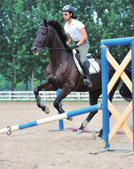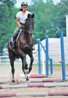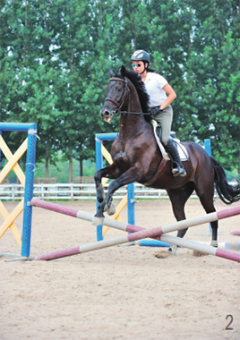 交叉桿的練習可以通過改善協(xié)調(diào)性、平衡感和節(jié)奏等方面有效地提高馬匹的跳躍能力,且不論馬匹處于何種競技級別。由于自身彈跳能力突出、步幅較大,有些馬匹在接近障礙的時候不會有意識地收縮步幅或者表現(xiàn)出猶豫不定。這樣的馬匹在低級別的比賽中很容易過關,但任其把這些細節(jié)問題從初級訓練階段帶到中級,甚至更高級別的時候,它們將遇到很多麻煩,因為高級別意味著馬匹的跳躍動作是必須要遵守一定規(guī)則的。 交叉桿的組合練習 準備工作 首先,在地上擺放6根地桿,每根地桿之間距離3米。然后,搭建交叉桿組合障礙——在第一處和最后一處地桿的兩側擺放好障礙支架,并分別利用兩根地桿搭建這兩處交叉桿;而中間的四根地桿分別在其一側放置障礙支架,障礙支架的具體擺放規(guī)則如下:在第二、第四根地桿的左側擺放支架,在第三、第五根地桿的右側擺放支架,或相反亦可。 這是一項運動性很強的練習,不僅可以有針對性地鍛煉馬匹的肢體,還能提高它的意識、促進它思考、保持平衡和正直、增強推進力、培養(yǎng)節(jié)奏等。 每道斜桿障礙都會更加嚴格地鍛煉馬匹的某一側肢體。 所有的騎手大都希望自己的坐騎能夠清楚地知道自己的蹄子在什么位置,這項練習就能充分激發(fā)馬匹時刻留意自己的四肢和馬蹄,就好似迫使馬匹在滾燙的地面上行走一般,有效幫助馬匹在組合障礙中解決“蹄忙腿亂”的問題。 另外,將第一處和最后一處設置成交叉桿的目的是鼓勵馬匹在這組障礙中保持平衡和正直,從而避免在進入和離開障礙的時候,馬匹偏離障礙中間位置的現(xiàn)象發(fā)生。通過這項練習,馬匹通常會快速地掌握從交叉桿的正中間位置跳躍障礙的技巧,因為實踐告訴它這是最省力的跳躍方法。 與越野賽性質(zhì)不同,場地障礙速度較慢,因此需要馬匹用后軀推進力取代速度,在騰空之前必須積攢能量;在跳躍時將飛節(jié)收到身體之下,身體的重量由后半軀承載;成功跳躍時,馬匹前肢應當是輕的,把重量調(diào)整到飛節(jié)上。有些馬匹習慣沖障礙,并且在跳障礙的時候節(jié)奏不穩(wěn)。但是,細心的騎手會在進行這項練習中發(fā)現(xiàn)馬匹會自覺地在每道障礙結束之后和下一道障礙開始之前,下意識地去保持住節(jié)奏并迅速后肢踏進,收回身體。 練習步驟 1. 如圖一所示,首先讓馬匹跑步過地桿做熱身訓練,要求馬匹抬高四肢,略微伸長步幅,使其鍛煉到所有的關節(jié)。 2. 如圖二所示,在第一處和最后一處完成交叉桿的搭建以后(此時中間四處仍為地桿狀態(tài)),讓馬匹從頭至尾練習一遍這組障礙桿。 3. 如圖三所示,接下來,將中間四個地桿按照準備工作中的說明隨機將其變成斜桿,變換的順序不重要,每抬高一處地桿,就讓馬匹跳躍一遍這組障礙,然后再抬起下一根地桿,如此往復。 編譯/汪亞麗、趙穎 技術指導/哈達鐵、韓壯壯 |