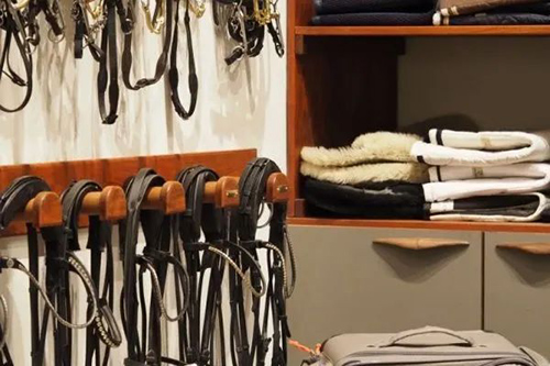 3、開始工作 清理干凈鞍具房,然后按照計(jì)劃去放回鞍具。確保一些必須工具是全的,因?yàn)檫@過程中你可能需要很多工具,如錘子和鐵掛鉤,以將鞍具掛在墻上。有條件的話可以雇傭一位裝修師傅幫助你。 注意!將孩子們要用到的裝備放到他們能夠得到的地方。日常比賽需要的、較重的物品需要放到距離出口近的地方。 一些不可忘記的元素: