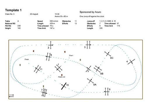 初入賽場(chǎng)的騎手面對(duì)更大的賽場(chǎng)、更多道障礙、更復(fù)雜難記的路線,往往會(huì)害怕犯錯(cuò)、會(huì)心生緊張。那如何像考場(chǎng)上審題一樣去解讀一張路線圖? ?依米大麥 像考試審題一樣看待路線圖 騎手看到路線圖,如考生拿到試卷。在拿到試卷的第一時(shí)間要整體瀏覽宏觀上的關(guān)鍵信息:賽制、賽場(chǎng)形狀、出入口位置、路線長(zhǎng)度、行進(jìn)速度、允許時(shí)間、限制時(shí)間、障礙數(shù)量和跳躍次數(shù)。貼時(shí)賽賽制需要特別注意貼近時(shí)間的計(jì)算、判罰與名次排列方式,而爭(zhēng)時(shí)賽賽制也不意味著需要騎手一定要從第一秒開始全力沖刺。 雖然國(guó)內(nèi)大多數(shù)賽場(chǎng)均呈標(biāo)準(zhǔn)長(zhǎng)方形,但規(guī)則中對(duì)馬術(shù)賽場(chǎng)只有最短邊和總面積的規(guī)定,形狀則可能各異,騎手因此不一定能夠借助長(zhǎng)邊或短邊來標(biāo)記路線的走向。在圖中較為容易看出哪些障礙前后會(huì)經(jīng)過場(chǎng)地出入口,從而警惕出入口對(duì)馬匹動(dòng)力產(chǎn)生的巨大影響。場(chǎng)地越大、級(jí)別越高,則行進(jìn)速度可能越快、路線長(zhǎng)度可能越長(zhǎng)。 場(chǎng)地障礙路線圖模板演示 不僅是初來乍到第一次參加比賽的騎手會(huì)面臨速度和耐力的挑戰(zhàn),任何從一個(gè)級(jí)別上升到更高級(jí)別的騎手,都面臨在更快速度、更長(zhǎng)路線下完賽的壓力挑戰(zhàn)。 通過在圖中記憶某幾個(gè)標(biāo)定點(diǎn),結(jié)合障礙數(shù)量和跳躍次數(shù),騎手更不容易因非技術(shù)性失誤而漏跳一道障礙被淘汰,或因錯(cuò)過一道障礙而盤旋導(dǎo)致障礙和時(shí)間上的罰分。 ?FEI/Christophe Taniére 看完宏觀關(guān)鍵信息后,請(qǐng)別急著前往賽場(chǎng)查看路線。路線圖中往往藏著更多解題思路,如起終點(diǎn)線的位置、花壇的擺放、路線整體布局等。缺乏賽場(chǎng)經(jīng)驗(yàn)的騎手,有的會(huì)在發(fā)起跑步時(shí)無意中穿過起點(diǎn)線而匆忙開始比賽,有的會(huì)在最后一道障礙落地后過早轉(zhuǎn)彎沒有通過終點(diǎn)線而遺憾錯(cuò)過好成績(jī)。 障礙旁的綠植對(duì)跳躍難度的影響超乎你的想象,而空地中央設(shè)置的花壇可能是設(shè)計(jì)師給騎手在回轉(zhuǎn)選擇上的小提醒。 障礙旁綠植擺放的不同形態(tài) ?FEI CAMPUS 路線整體布局則是騎手最關(guān)注、最需要時(shí)間琢磨的部分,蘊(yùn)含大量的技術(shù)信息,包括進(jìn)入起點(diǎn)線的空間、直線關(guān)聯(lián)的障礙數(shù)量、弧線關(guān)聯(lián)的障礙數(shù)量、組合障礙的類型和數(shù)量、兩道障礙之間銜接的方式或相對(duì)位置、回轉(zhuǎn)的直徑和空間、一道障礙起跳前或落地后距離圍欄的空間等。 這些信息在圖中均可讀取,但也僅僅是粗略讀取、分類,因?yàn)閳D紙上不會(huì)標(biāo)注障礙高度、延展寬度、關(guān)聯(lián)距離等精確信息。下一步,才是進(jìn)入賽場(chǎng),用眼睛觀察、用腳步丈量。用腳丈量的最基本方法是找到一道障礙的正中,背靠障礙,根據(jù)障礙類型,向前走到落地點(diǎn)。 18.6米的直線關(guān)聯(lián)距離 ?FEI CAMPUS 如圖,假設(shè)這是一條約18.6 米的直線關(guān)聯(lián)距離。此刻,自落地點(diǎn)起,騎手向前走 3 步為落地后馬匹的第一步,再走 4 步為馬匹的第二步,以此類推,走完馬匹的 4 步, 此時(shí)騎手應(yīng)目測(cè)距離下一道障礙不到 2 米,即為起跳點(diǎn)。在實(shí)際情況中,落地點(diǎn)距離和起跳點(diǎn)距離都必須根據(jù)障礙類型、行進(jìn)速度和自身馬匹的情況而作出決策。 一條路線的拆解其實(shí)并沒有標(biāo)準(zhǔn)答案 一條全程路線所包含的信息可以龐大而復(fù)雜,越有經(jīng)驗(yàn)的騎手越能快速處理并給出解題策略。在成功獲取路線圖全部信息后,騎手需要將腦海中的假設(shè)與現(xiàn)實(shí)情況一一對(duì)照,并填補(bǔ)一些圖紙上沒有標(biāo)明的空白信息。在實(shí)際走入場(chǎng)地的路線查看過程中,騎手會(huì)切身感受起點(diǎn)線和第一道障礙的進(jìn)入角度與進(jìn)入空間、每一道障礙的實(shí)際高度、每一道雙橫木的實(shí)際寬度、弧線關(guān)聯(lián)障礙之間的實(shí)際角度、回轉(zhuǎn)時(shí)的視野和留給馬匹的反應(yīng)時(shí)間等。 除此以外,騎手對(duì)賽場(chǎng)的空間感、噪音源、燈光或陽光照射角度與強(qiáng)度、賽場(chǎng)周圍移動(dòng)的人和物體、腳下的砂軟硬程度、障礙的形態(tài)與顏色等觀察能力是賦予一張路線圖更多血肉、最終能夠決定每一對(duì)人馬組合臨場(chǎng)表現(xiàn)的關(guān)鍵。 在同一個(gè)賽場(chǎng),會(huì)有帶著完全不同心情、不同目的赴約的騎手。面對(duì)同一條路線,有的騎手希望蟬聯(lián)積分榜,爭(zhēng)取零失誤,那么在路線查看時(shí),會(huì)特別謹(jǐn)慎地確定起跳點(diǎn)、起跳角度、丈量精準(zhǔn)的關(guān)聯(lián)距離、查看每一種回轉(zhuǎn)的線路選擇。另一些騎手希望帶給初登賽場(chǎng)的馬匹一些參賽經(jīng)驗(yàn),增強(qiáng)馬匹自信,那么他很可能更愿意流暢而平穩(wěn)地完成這條路線,放棄更極限的行進(jìn)速度和更冒險(xiǎn)的回轉(zhuǎn)角度。 障礙路線的拆解和應(yīng)對(duì),永遠