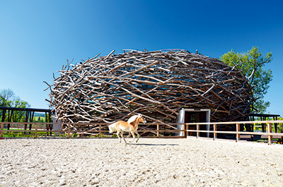 一個(gè)能成為旅人們心之向往的遠(yuǎn)方,或許是因?yàn)槟莾旱纳酱谰白阋詼焓幮撵`,或許是因?yàn)橐皇自?shī)抒發(fā)了太深沉的期許,亦或是一個(gè)動(dòng)人的故事就那么讓你著迷了。它出現(xiàn)在你視野里的時(shí)間不一定,一個(gè)偶然,就牽動(dòng)了你的心。 可是一個(gè)破舊荒蕪的農(nóng)場(chǎng),會(huì)有什么吸引力? 在捷克共和國(guó)的Olbramovice省,距離布拉格向南50公里,有一處農(nóng)場(chǎng),周圍是典型的山麓地區(qū)景觀,有大片森林、廣闊的草地、濕地和連城網(wǎng)狀的池塘。農(nóng)場(chǎng)建于19世紀(jì),包括一座帶有煙囪的釀酒廠,不過從20世紀(jì)80年代末開始它就被閑置下來,農(nóng)場(chǎng)里的建筑物也很快衰敗。唯一留下來的居民就是住在釀酒廠煙囪上的鸛鳥。 2006年SGL Projekt設(shè)計(jì)公司應(yīng)邀設(shè)計(jì)改造一處農(nóng)場(chǎng),用于會(huì)議、公司展示、舉辦公司活動(dòng)和休閑娛樂活動(dòng)。他們看中了這座建于19世紀(jì)的農(nóng)場(chǎng),并因?yàn)樽?926年起就一直居住在釀酒廠煙囪里的鸛鳥而最終將其買下。 “鸛鳥的鳥巢對(duì)我們來說是一種象征,影響了我們對(duì)于馬場(chǎng)的設(shè)計(jì)概念及該項(xiàng)目的主題設(shè)計(jì)。我們是被鸛鳥的忠誠(chéng)吸引了!有近90代鸛鳥每年從非洲飛回這個(gè)農(nóng)場(chǎng),于是我們盡力設(shè)計(jì)好它,也為了讓人們?cè)俅位氐竭@里來?!?/div> 這些鳥筑巢的耐力也深深吸引了建筑師們。數(shù)十年來,它們筑的巢不管是形狀還是使用的材料都始終如一,并且一直都在同一個(gè)地方,從未想過要變個(gè)花樣來。推陳出新一直都是困擾當(dāng)今建筑師和施工人員的一個(gè)難題,而鸛鳥沒有選擇其他地方,也不想標(biāo)新立異與其他鳥競(jìng)爭(zhēng)。這成為建筑師們領(lǐng)會(huì)建筑精神的一個(gè)啟示。這些建筑師們謙遜的接受這些鸛鳥的指引,對(duì)這座農(nóng)場(chǎng)進(jìn)行整體設(shè)計(jì)和改造。 舊農(nóng)場(chǎng)由一個(gè)幾乎方形的封閉院子和一個(gè)豬舍組成。院子里包括兩處住宅、一個(gè)釀酒廠、一個(gè)谷倉(cāng)和一個(gè)馬廄。貴重的物品都保留了下來,質(zhì)量不佳的建筑都被清除掉了,并在原址上建起了新的。住宅的院子里包括一個(gè)接待室、一個(gè)酒店、會(huì)議大廳、餐廳、游泳池、保齡球室和為貴賓準(zhǔn)備的帶有私家花園的房子。 除了住宅院子,設(shè)計(jì)師們還專為動(dòng)物另建了一處新院子。在這部分區(qū)域內(nèi)設(shè)計(jì)師按照鸛鳥巢的形狀設(shè)計(jì)了一個(gè)圓形的馬場(chǎng)。其外部直徑34米,高12.5米。該 建筑 最多的時(shí)候用于騎馬,不過在進(jìn)行簡(jiǎn)單的改造之后,就可以臨時(shí)變成一個(gè)舉辦會(huì)議、文娛活動(dòng)的場(chǎng)所。馬場(chǎng)就安置在馬廄的附近,并與餐館直接相連,支撐結(jié)構(gòu)由膠合木梁制成,包層用的是聚碳酸酯材料,最外層的橡樹枝結(jié)構(gòu)使得建筑別具特色,同時(shí)也提 供了遮陰。這些長(zhǎng)7米、9米或11米的橡樹枝被牢牢固定在建筑物的最外層上,總計(jì)約有200噸重。 在建筑物的頂部中央有一個(gè)直徑8米的自然光口,作用是加強(qiáng)內(nèi)部空間自然空氣的流通。自然通風(fēng)設(shè)計(jì)為場(chǎng)館提供了一個(gè)良好的環(huán)境氛圍。場(chǎng)館的騎馬廠區(qū)專為馬術(shù)運(yùn)動(dòng)而設(shè)計(jì),地面由沙子覆蓋,并裝有毛細(xì)灌溉系統(tǒng)。在進(jìn)行其他活動(dòng)的時(shí)候,可以用膠合板將沙地蓋上。騎馬區(qū)由一圈保護(hù)欄圍起,觀眾看臺(tái)有大約200人的坐席,在樓上還設(shè)計(jì)有貴賓看臺(tái)。 鸛鳥巢農(nóng)場(chǎng)于2010年建成,馬場(chǎng)成為這個(gè)農(nóng)場(chǎng)區(qū)的地標(biāo)。農(nóng)場(chǎng)與鸛鳥的故事使得這個(gè)地方多了一種浪漫色彩。它曾熱鬧過,后來被舍棄,漫長(zhǎng)孤寂的歲月里只有鸛鳥每年如約的陪伴和守護(hù)。農(nóng)場(chǎng)像一位風(fēng)燭殘年的老人,鸛鳥像是它的子孫,也幾乎是愛侶。在我們看來,鸛鳥巢農(nóng)場(chǎng)是幸運(yùn)的,它雖失去了寧?kù)o,卻煥發(fā)了生機(jī)?,F(xiàn)在越來越多的人來到這里度假,騎馬。后來,SGL Projekt 設(shè)計(jì)公司還為農(nóng)場(chǎng)設(shè)計(jì)了一個(gè)動(dòng)物保護(hù)中心,最近還建成了一個(gè)更大的矩形騎馬場(chǎng)。 文/吳曼 圖/SGL Projekt |