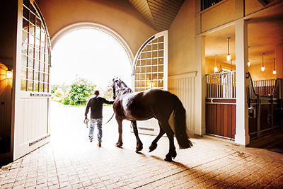 作為Martha Stewart家庭用品公司的創(chuàng)始人,曾被評(píng)為“全美第二大女富豪”的Martha Stewart,其成長(zhǎng)和成功經(jīng)歷頗具傳奇色彩,同時(shí)她也是著名的電視和雜志專欄作家。然而說(shuō)到馬場(chǎng),Martha也絕對(duì)不會(huì)讓你失望。 經(jīng)美國(guó)《Equestrian Quarterly》雜志許可再次出版。Reprinted with the courtesy of Equestrian Quarterly magazine of U.S.A. (www.equestrianquarterly.com) 主要照片由 George Kamper 拍攝 為《Equestrian Quarterly》工作的一項(xiàng)福利是能夠親身拜訪平時(shí)只出現(xiàn)在我們想象中的馬場(chǎng)。這次的參觀正好印證了這點(diǎn),我們開(kāi)車行駛在紐約州 Bedford 的小路上,前往傳奇富商 Martha Stewart 153 英畝的農(nóng)莊。我們?cè)谀鞘艿搅藷崃业臍g迎,而農(nóng)莊也正如我們的期待一樣完美。這真是一場(chǎng)關(guān)乎創(chuàng)意設(shè)計(jì)、趣味結(jié)構(gòu)、絕妙細(xì)節(jié)的視覺(jué)盛宴。我們目之所及,都帶給我們出乎意料的震撼。請(qǐng)加入我們,一同進(jìn)入農(nóng)莊參觀吧。Martha 在大約10年前建造了這個(gè)歐式的有8個(gè)畜欄的石頭馬廄。Martha 帶我們參觀時(shí)騎著 Rinze,這是她 5 匹弗里斯蘭馬 (Friesian) 中的一匹 ;陪同我們參觀的還有她的法國(guó)斗牛犬 Francesca 和 Sharkey ;左邊的石屋里有一系列四輪馬車、花園 ;馬廄里備有款待賓客的美食廚房 ;她的三只小型驢,有兩只就在這里。 農(nóng)莊占地153英畝,有超過(guò)4英里可供馬車行駛的道路。Martha把這個(gè)原來(lái)是牛場(chǎng)的莊園進(jìn)行了改造,重建了古舊的老式農(nóng)舍,同時(shí)新建了許多這里的其他建筑物。 |