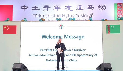 在活動開幕式上,巴拉哈特·杜爾德耶夫大使在致辭中講到:歡迎各國來賓共慶國際納烏魯孜節(jié),關(guān)注土庫曼民族歷史和文化遺產(chǎn)。值土中建交31周年之際,土庫曼斯坦總統(tǒng)謝爾達(dá)爾·別爾德穆哈梅多夫來華進(jìn)行國事訪問,土中關(guān)系提升為全面戰(zhàn)略伙伴關(guān)系,雙方互尊互信、互利共贏,各領(lǐng)域合作達(dá)到歷史最高水平。雙方商定,加緊推進(jìn)“一帶一路”倡議和“復(fù)興絲綢之路”戰(zhàn)略對接,推動土中各領(lǐng)域合作齊頭并進(jìn),特別是青年的發(fā)展和培養(yǎng)也成為合作的重要部分。大使強(qiáng)調(diào):同意中國馬業(yè)協(xié)會的提議,共同建立“中土青年友誼馬場”,為兩國青年提供更廣闊的學(xué)習(xí)、交流平臺,也為加深兩國友誼增光添彩。