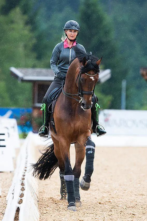 在年輕馬調(diào)訓(xùn)方面,Cathrine 會(huì)盡早教小馬基本的規(guī)矩,在馬養(yǎng)成壞的習(xí)慣前,先建立起良好的行為準(zhǔn)則。從零開(kāi)始建立好習(xí)慣,比改正壞習(xí)慣要容易得多。通常在3歲前,Cathrine 會(huì)讓小馬自由生長(zhǎng),到了3歲后,會(huì)從馬房中開(kāi)始,教年輕馬基礎(chǔ)的被拴住站立、刷理、搬蹄、牽行等。從小和騎手接觸得越多,長(zhǎng)大后馬匹就會(huì)更服從騎手。但在年輕馬調(diào)訓(xùn)的階段,要注意方式方法,也不要給馬過(guò)大的壓力,讓馬學(xué)不會(huì)從而自信心受挫。 “對(duì)我來(lái)說(shuō)很重要的一點(diǎn),是在日常訓(xùn)練中讓馬不斷見(jiàn)識(shí)新鮮的東西。我在調(diào)訓(xùn)馬匹中,會(huì)變換各種訓(xùn)練方式,甚至有時(shí)候會(huì)讓馬跳一跳。我要讓馬見(jiàn)識(shí)這個(gè)世界的多彩?!?/div> 在日常訓(xùn)練中,Cathrine 并不會(huì)只專注于比賽內(nèi)容,她會(huì)帶她的舞步馬做一些簡(jiǎn)單的障礙訓(xùn)練,通過(guò)這種方式,會(huì)讓馬不覺(jué)得訓(xùn)練枯燥,更有動(dòng)力工作。除了場(chǎng)地內(nèi)的訓(xùn)練外,Cathrine 每周會(huì)帶馬到戶外休閑騎乘1-2次,幫助馬匹脫敏的同時(shí),也能更好地建立起馬匹對(duì)自己的信任和依賴。 針對(duì)于不同性格的馬匹,在訓(xùn)練方式上也需要做出改變。比如對(duì)于特別急躁的馬來(lái)說(shuō),在馬房的布置、日常飼喂和訓(xùn)練內(nèi)容中,要盡量幫助它們保持放松和舒適;而對(duì)于比較懶散的馬匹,則會(huì)更多地變換新鮮的訓(xùn)練方式,幫助它們提起對(duì)訓(xùn)練的興趣。 “無(wú)論是大獎(jiǎng)賽騎手還是初學(xué)者,多練習(xí)步法轉(zhuǎn)換,都可以幫助馬匹變得更服從和靈敏。” 在熱身中,步法轉(zhuǎn)換時(shí)Cathrine 最首要的訓(xùn)練內(nèi)容,快步和慢步的轉(zhuǎn)換,快步和跑步的轉(zhuǎn)換。多做步法的變換,會(huì)讓馬匹更加將注意力集中在騎手身上,會(huì)幫助急躁的馬安靜穩(wěn)定;幫助懶惰的馬開(kāi)始思考,進(jìn)入工作狀態(tài)。 對(duì)于年輕馬,或是平衡不夠好的馬,Cathrine 會(huì)讓它們交替做20米的圈程和沿圍欄的直線跑步,對(duì)于平衡感差的馬,從圈程出來(lái)后,很快就會(huì)失去平衡和正直。當(dāng)馬失去平衡后,再回到圈程,交替訓(xùn)練,循序漸進(jìn)地幫助馬匹學(xué)會(huì)在直線上保持平衡和正直。 “我不喜歡過(guò)于靜態(tài)的訓(xùn)練,我習(xí)慣將多個(gè)方向的訓(xùn)練交叉融合在一起,多變換節(jié)奏、變換方向、變換正直和彎曲,對(duì)馬來(lái)說(shuō)更有趣也更有挑戰(zhàn)?!?/div> Cathrine 會(huì)在年輕馬階段,就開(kāi)始教馬練習(xí)橫向運(yùn)動(dòng),在馬4歲左右時(shí),開(kāi)始沿著圍欄/墻壁的簡(jiǎn)單腰內(nèi)練習(xí),幫助馬匹建立平衡的同時(shí),這也是后肢深踏的雛形訓(xùn)練。平地的訓(xùn)練熟練后,可以開(kāi)始進(jìn)行騎行的練習(xí)。騎手腿部給馬指令,讓馬偏橫步做5米左右,隨后讓馬恢復(fù)直線行走,如果馬匹能夠保持良好的平衡,則可以再次嘗試5米的偏橫步。偏橫步和直線的交替,可以幫助馬匹迅速找到平衡。 “馬下的健身,給我在馬背上的騎姿,帶來(lái)了很大的改變,尤其在壓浪中?!?/div> Cathrine 除了每天騎乘8匹馬,每周還會(huì)去健身房至少6次。如果騎手自身的肌肉力量和身體素質(zhì)不夠,在長(zhǎng)時(shí)間的騎行中,很難給馬精準(zhǔn)到位的輔助。有氧和無(wú)氧訓(xùn)練,提升體能和肌肉力量,才能更好地騎乘。 |