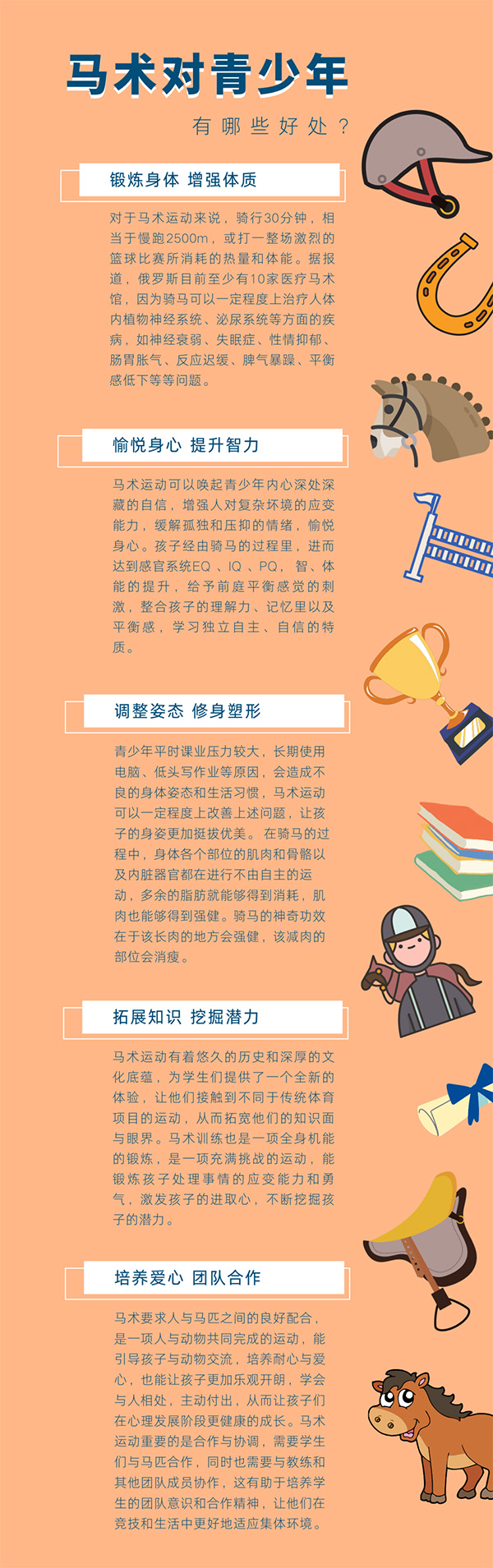 隨著雙減政策的順利實(shí)施,學(xué)校和家長對于在課余時間選擇什么運(yùn)動更適合培養(yǎng)青少年全面發(fā)展有很大的壓力。選擇一項(xiàng)有趣有益,且能伴隨孩子成長的運(yùn)動成為學(xué)校和家長的第一選擇。馬術(shù)是一項(xiàng)十分適合青少年發(fā)展的運(yùn)動,能夠全方位的鍛煉孩子的身體機(jī)能,也能培育孩子的交流意識。在馬術(shù)進(jìn)校園等校企合作項(xiàng)目開展以來,全國各地的馬術(shù)俱樂部與校園通力合作,成功舉辦了許多次線下課程,吸引了大批青少年馬術(shù)愛好者與馬術(shù)興趣人群。通過理論與實(shí)踐結(jié)合的授課模式,首先培養(yǎng)學(xué)生們的興趣,講解基本的馬術(shù)常識、帶來精彩紛呈的馬術(shù)展示,然后帶領(lǐng)學(xué)生們騎上馬背,進(jìn)行激動人心的馬術(shù)騎乘教學(xué),逐步拓寬兒童與青少年馬術(shù)愛好者群體,讓孩子們沉浸的感受馬術(shù)課程的魅力。 近來,無錫夢想、成都維亞、南京莫奈花園等馬術(shù)俱樂部,通過馬術(shù)進(jìn)校園活動積極響應(yīng)國家政策,發(fā)揮自身力量,與周圍學(xué)校合作開展校園馬術(shù)社團(tuán)課,有的還組建了校園馬術(shù)隊(duì),目前已經(jīng)覆蓋多所學(xué)校,越來越多的學(xué)生開始了解并愛上馬術(shù)這一充滿魅力與生命活力的運(yùn)動。蘇州世騎家等俱樂部還開展了校企合作,秉承著馬術(shù)育人的初心,與高校聯(lián)合推動馬術(shù)人才培養(yǎng),為馬術(shù)行業(yè)培養(yǎng)實(shí)用性人才。通過這些方式凝聚了一批又一批青少年馬術(shù)愛好者,成為當(dāng)?shù)赝茝V馬術(shù)運(yùn)動的新力量。馬術(shù)運(yùn)動進(jìn)校園,能夠幫助學(xué)生在體育鍛煉中享受樂趣、增強(qiáng)體質(zhì)、健全人格、錘煉意志。讓我們一起來看看學(xué)習(xí)馬術(shù)對青少年的好處: 隨著馬術(shù)在兒童和青少年中的普及程度越來越高,馬術(shù)教練員的需要也越來越大,教練員是馬術(shù)行業(yè)里至關(guān)重要的一環(huán),他們的職責(zé)不僅僅是傳授專業(yè)馬術(shù)技能,更是培養(yǎng)學(xué)生們的馬術(shù)素養(yǎng)和品格,這也要求了馬術(shù)教練員們更加廣泛和系統(tǒng)性的專業(yè)知識和技能。中國馬術(shù)協(xié)會專業(yè)人才培養(yǎng)計劃-星級教練課程的學(xué)習(xí)內(nèi)容包括了青少年心理健康,青少年馬術(shù)教學(xué)方法論,青少年?duì)I養(yǎng)與發(fā)育等基礎(chǔ)理論內(nèi)容,這些都能夠幫助教練更好的了解青少年教育結(jié)合馬術(shù)運(yùn)動的教學(xué)方法,完美銜接學(xué)校體育教育的相關(guān)內(nèi)容,最大程度的為學(xué)校體育教育起到補(bǔ)充的作用。 馬術(shù)從業(yè)者們?nèi)绻朐谛袠I(yè)長期發(fā)展,在取得星級專業(yè)教練員證書后,還可以申請報考國家教練員崗位班,通過后可獲得相應(yīng)級別教練員職稱稱號。對于教育體系內(nèi)的體育老師晉升,以及校外退役運(yùn)動員或者從業(yè)人員進(jìn)入教育體系工作,也能起到十分巨大的幫助和作用。從行業(yè)發(fā)展的角度來看,中國的馬術(shù)教練員們需要不斷提升自身業(yè)務(wù)能力水平,在國家鋪設(shè)的晉級通道上面一步一步發(fā)展,才是長期職業(yè)規(guī)劃的晉升基礎(chǔ)。希望每一個教練都能夠以提升自身執(zhí)教水平為目標(biāo),不斷創(chuàng)新和發(fā)展,為中國馬術(shù)事業(yè)培育更多新生代力量。近期,馬術(shù)星級專業(yè)教練線上培訓(xùn)考核即將開課,課程信息請點(diǎn)擊如下鏈接獲?。?/div> |