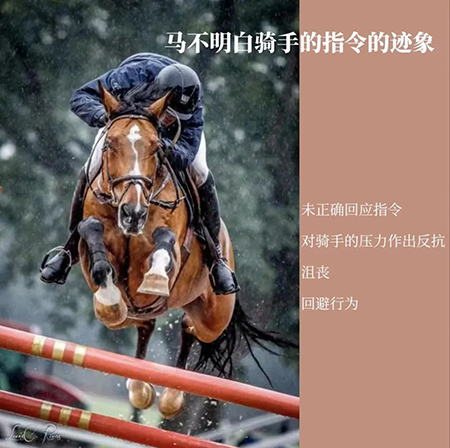 通常,騎手可能會將馬缺乏對指令的理解誤認(rèn)為它們固執(zhí)。這種溝通不暢的情況會導(dǎo)致馬匹和騎手的配合變得困難。如果騎手能夠識別馬匹是否理解指令,才可以進(jìn)行更好地合作,輔助馬匹做出騎手要求的動作。 以下是馬在不理解騎手指令時的常見表現(xiàn):