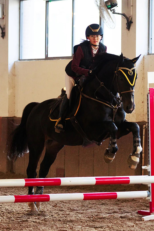 張雨馨:我學(xué)會了平衡馬術(shù)與學(xué)習(xí) 騎手張雨馨 在北京市海淀外國語實驗學(xué)校的京北校區(qū),我們見到了張雨馨的媽媽。 “我每周都會給馬準備胡蘿卜,挑選、清洗、切好,然后提過來,讓孩子喂給馬兒吃。照顧馬的事情不容疏忽,馬兒容易生病、受傷,只有我們將所有事安排妥當(dāng),才可能降低馬匹產(chǎn)生意外的概率?!?/div> 在與她的交流中,我們感受到她對女兒傾盡了所有的母愛,事無巨細,將女兒的生活、學(xué)習(xí)和馬術(shù)訓(xùn)練照顧得井井有條。身邊有溫柔、細致、做事穩(wěn)妥的媽媽作榜樣,在潛移默化的影響下,雨馨也成長為一名自信大方、思維成熟而縝密的小騎手。 2023年天津市“騎聚津門·馳躍九州”公開賽,張雨馨與馬匹“墨雨蛟龍” 雨馨小時候,曾在加拿大溫哥華見到過一匹讓她一見鐘情的馬,從此她的心中就種下了學(xué)習(xí)馬術(shù)的種子。 2022 年北京市海淀外國語實驗學(xué)校開設(shè)中英文馬術(shù)藤飛班,旨在培養(yǎng)學(xué)生的學(xué)習(xí)能力、思維表達、小眾運動特長以及同理心、公益心,讓學(xué)生具備國際頂尖大學(xué)所需的全方位素質(zhì),雨馨成為了這個班集體的一員。 在來到中英文馬術(shù)藤飛班后,在自身的努力和家人的支持下,她在初一時,便擁有了一匹自己的黑駿馬,“呆龍”。剛見到這匹馬時,雨馨并沒有特別喜歡它,但在接觸一段時間后,就發(fā)現(xiàn)它是一匹能力很強、很愿意幫助騎手的馬,自那以后,雨馨就漸漸愛上了它。 “我現(xiàn)在很喜歡跟它互動,經(jīng)常給它喂零食,也會給它洗澡和打理。” 學(xué)校除了室內(nèi)外馬術(shù)訓(xùn)練場外,還有馬房,飼養(yǎng)了 50 多匹教學(xué)馬。除了自己的馬,雨馨還會騎乘學(xué)校的教學(xué)馬,在這些馬里面,她最喜歡一匹退役下來做場地障礙的純血馬。 雨馨每天的課程安排中會有兩節(jié)馬術(shù)課,其中一節(jié)是馬術(shù)騎乘課,同時搭配馬術(shù)英語、馬術(shù)理論、體能課或者馬房課中任意一節(jié)。由于每天最多只能安排8節(jié)課程,因此馬術(shù)課所占用的兩節(jié)文化課時間只能在自習(xí)課或者晚自習(xí)的時間補回來。 “雖然馬術(shù)訓(xùn)練占用了部分學(xué)習(xí)時間,但我覺得這對我的文化課學(xué)習(xí)并沒有影響,反而讓我學(xué)會了如何更有效率地學(xué)習(xí)和完成作業(yè)。” 在雨馨的班級里,同學(xué)之間似乎達成了某種默契?!拔覀兌贾缹W(xué)習(xí)馬術(shù)是搶時間,因此都非常自覺去提高速度,比誰換裝備更快?!氨取W(xué)、趕、幫、超”也是班里同學(xué)們的日常學(xué)習(xí)狀態(tài),在完成校內(nèi)多達14門中英文課程的同時,同學(xué)們堅持刻苦訓(xùn)練馬術(shù),很多時候早上7點就開始訓(xùn)練,為了各自的馬術(shù)目標一刻也不松懈?!?/div> 為了有更多時間進行訓(xùn)練,學(xué)生們會利用碎片時間、有效率地將周末作業(yè)提前寫完,然后在周日早早來到學(xué)校,再約一節(jié)馬術(shù)課“吃小灶”,這樣的正向“內(nèi)卷”已經(jīng)在孩子們之間悄然興起。 從零基礎(chǔ)開始,經(jīng)過一年半時間的馬術(shù)訓(xùn)練,雨馨開始越來越多地參加馬術(shù)賽事?!捌鋵嵜看紊媳荣悾叶几杏X很緊張,怕自己控不住馬,不能按照教練指導(dǎo)的方案和策略完成路線?!庇贶罢f到。 在奪得河北省第十六屆運動會馬術(shù)場地障礙項目最高級別冠軍之前,雨馨還參加了河北省馬術(shù)場地障礙錦標賽,在那場比賽中,雨馨策騎“呆龍”以零罰分跳完了全部障礙,但因在比賽結(jié)束時,“呆龍”反跳了一道障礙,原本第四的成績被取消了。賽后,雨馨有些低落消沉,甚至不打算再參加接下來的省運會了,但在教練的鼓勵下,她又騎乘學(xué)校的馬“颯露銀雀”參加了天津兆天馬術(shù)俱樂部“騎聚津門·馳躍九州”公開賽,在那場比賽中她重建了自信,再次踏上了比賽的征程,并成功在河北省運會上與馬匹“颯露銀雀”一起奪得了冠軍,榮獲了國家一級運動員稱號。 海淀外國語學(xué)校京北校區(qū)馬房 “每次比賽前我都會找教練,詢問各種在賽場上我可能遇到的問題,教練每次都會幫我分析,幫我找到方法克服。一起走路線、算步數(shù),一起設(shè)計小回轉(zhuǎn)的角度,如何用腿的輔助、規(guī)劃好路線等。感謝教練一直支持我,帶我去各地比賽,相信我的能力。即使在比賽前壓力再大,著急到想哭,但上場之后,我會盡力讓自己什么都不想,拿出全力去完成教練與我一起在賽前制定好的騎乘策略?!?/div> 與姐姐,在教練和老師帶領(lǐng)下成長 張雨馨還有一個雙胞胎姐姐,張可馨。她與雨馨同班,此次姐姐也參加了河北省運動會馬術(shù)場地障礙項目,雖然沒有拿到國家一級運動員稱號,但也拿到了很優(yōu)秀的成績?!拔遗c姐姐一起訓(xùn)練,共同成長。這一年半,我也看到了姐姐的蛻變,從一開始只是在一遍遍僵化地訓(xùn)練,到現(xiàn)在開始分析錯誤原因,尋求突破口,姐姐變得越來越靈活,越來越通透。學(xué)習(xí)馬術(shù)這一年半時間里,我們都成長了很多。” 在這個過程中,兩姐妹相互鼓勵,面對困難也從不氣餒。“我們從來都是摔下馬后,接著上馬繼續(xù)練,這對我們來講,沒什么大不了的?!笨绍爸v到。 姐姐張可馨(左)妹妹張雨馨(右) 兩姐妹能夠?qū)崿F(xiàn)在一年