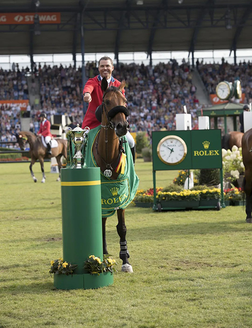 勞力士代言人、美國騎手肯特·法靈頓佩戴格林尼治型 II ?Rolex/Ashley Neuhof 在六月底開啟的2023年亞琛世界馬術(shù)節(jié)來臨之前,勞力士代言人、美國騎手肯特·法靈頓(Kent Farrington)在線上虛擬勞力士圓桌會議上與記者們共同慶祝勞力士場地障礙賽大滿貫十年慶典的推出。 當(dāng)與肯特·法靈頓對話時,《馬術(shù)》雜志記者感受到了這位騎手對馬術(shù)運動恒久的熱愛。謙遜、耐心、孜孜不倦,這是肯特·法靈頓得以成為眾多場地障礙騎手偶像的原因之一。 Q:你在2019年搭檔“Gazelle”贏得了亞琛世界馬術(shù)節(jié)勞力士大獎賽冠軍,這場勝利對你來說意味著什么? 肯特·法靈頓:2019年搭檔“Gazelle”在亞琛世界馬術(shù)節(jié)勞力士大獎賽的勝利對我來說非常特別,像是一場成功的“復(fù)仇”。我曾經(jīng)在這里取得過非常好的成績,包括一個亞軍,這也是我腿嚴(yán)重骨折受傷,暫別賽場一段時間后的一次勝利。從某種意義上說,這場勝利意味著我重新回到馬術(shù)運動的最高水平,也代表著我已經(jīng)完全康復(fù),我把它視為我職業(yè)生涯的重要節(jié)點。 勞力士代言人、美國騎手肯特·法靈頓搭檔“Gazelle” 奪得2019年亞琛世界馬術(shù)節(jié)勞力士大獎賽冠軍 ?Rolex/Kit Houghton Q:勞力士場地障礙賽大滿貫10周年慶典將于下個月在亞琛世界馬術(shù)節(jié)正式啟動,勞力士場地障礙賽大滿貫在過去10年是如何影響這項運動的? 肯特·法靈頓:我相信勞力士場地障礙賽大滿貫提升了這項運動的聲譽。騎手們圍繞著勞力士場地障礙賽大滿貫去做全年的賽事規(guī)劃,大家都非常重視這項賽事。勞力士場地障礙賽大滿貫不僅是世界上獎金最高的馬術(shù)賽事,同時還有著極高的地位,我相信所有騎手都會一致認(rèn)為,勞力士場地障礙賽大滿貫賽事代表著這項運動的最高水平。 Q:作為一名運動員,成功路上天時地利人和非常重要。你如何幫助馬匹在恰當(dāng)?shù)臅r間點達(dá)到運動狀態(tài)的巔峰?如果馬匹狀態(tài)不佳,你如何應(yīng)對? 肯特·法靈頓:在高級別的競技中,騎手和運動馬在賽時達(dá)到運動狀態(tài)的巔峰是至關(guān)重要的。任何騎手或馬匹,都不可能一年365天處于巔峰運動狀態(tài)。 首先要確定哪個比賽對于自己是最重要的,之后為剩下的事情排一個先后順序。如果你什么都想要,最終什么也得不到。我認(rèn)為這也是為什么勞力士場地障礙賽大滿貫對于場地障礙這個項目這么重要,它給了騎手一個努力的目標(biāo),所有騎手為同一個賽事付出很多努力,會帶動整個賽事的水準(zhǔn)。 勞力士代言人、美國騎手肯特·法靈頓策騎“Gazelle” 贏得 2017 年日內(nèi)瓦國際馬術(shù)節(jié)勞力士大獎賽冠軍 ?Rolex/Ashley Neuhof 再回到馬匹狀態(tài)這個話題上,我認(rèn)為像人一樣,每匹馬的情況都不一樣。今年我騎乘的馬并沒有擁有太多高級別的比賽經(jīng)驗,所以我?guī)椭_(dá)到運動巔峰的備賽方法是帶他去一些大比賽,確保他在抵達(dá)亞琛世界馬術(shù)節(jié)時,對于那里的比賽環(huán)境能夠適應(yīng)并保持放松。 幾年前,我搭檔更具備經(jīng)驗的馬時,我的備賽方法會完全不同,我會讓他們多休息,同時留意馬匹的體能,確保馬匹在抵達(dá)賽場時,頭腦和身體都是充滿活力的,而不覺得很無聊。 勞力士代言人、美國騎手肯特·法靈頓搭檔“Gazelle” 奪得2019年亞琛世界馬術(shù)節(jié)勞力士大獎賽冠軍 ?Rolex/Kit Houghton Q:你是如何培養(yǎng)下一代大獎賽馬匹的? 肯特·法靈頓:培養(yǎng)下一代大獎賽馬匹是一個艱巨的任務(wù),我會以一種自信和積極的心態(tài)面對所有的調(diào)教工作,相信我挑選的馬匹以及我的訓(xùn)練方法。同樣,對于那些確實沒有天賦的馬,也要坦然接受。腳踏實地的調(diào)教,加上自信和耐心的心態(tài),會帶來最好的結(jié)果。 Q:你已經(jīng)取得了這么多成就,你如何面對你的成就,并不斷進(jìn)步成為更好的騎手? 肯特·法靈頓:馬和馬術(shù)運動的特殊性,讓我能夠保持謙遜,因為和馬相處時變量很大,有時站在頂峰,有時又跌落谷底,但這也正是馬術(shù)運動的美妙之處。每匹馬都是一個獨立的個體,而與馬的緊密關(guān)系,并不總是一成不變的,我需要學(xué)會去適應(yīng)不同的馬匹,這也總是能增加我對這項運動的新鮮感和興奮感,了解他們的不同個性,發(fā)掘馬匹最大潛能,這是我認(rèn)為最有收獲的事情,也是我不斷前進(jìn)的動力。 勞力士代言人、美國騎手肯特·法靈頓策騎“Gazelle” 獲得2021年云杉草地大師賽勞力士呈現(xiàn)CP國際大獎賽亞軍 ?Rolex/Ashley Neuhof Q:你是什么時候開始愛上場地障礙這項運動的? 肯特·法靈頓:我一直很喜歡動物,我對馬術(shù)的熱愛最初也是源于對于馬的喜愛。我15~16歲左右開始參加pony賽事。對于馬的熱愛,才慢慢發(fā)展為對于馬術(shù)運動的熱愛,也正是那時候,我認(rèn)為我以后一定會成為一個速度賽馬騎師,后來我才慢慢開始接觸場地障礙賽,并往這個方向發(fā)展。但一切都源于我對于馬、對于動物的喜愛。 轉(zhuǎn)錄/rEvolution 編譯/李晏萍?圖/勞力士 |