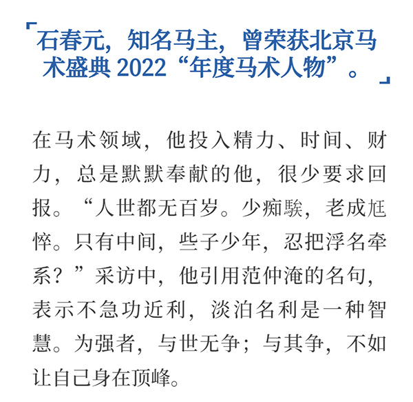 石春元:盡我所能支持馬匹繁育和新生代騎手發(fā)展