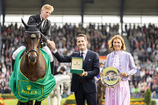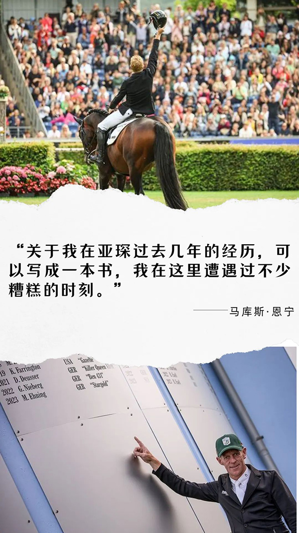 德國騎手馬庫斯·恩寧(Marcus Ehning)搭檔“Stargold”獲得2023年亞琛世界馬術(shù)節(jié)勞力士大獎賽冠軍 ?Rolex/Lindsay Brock 對于2023年亞琛世界馬術(shù)節(jié)來說,這場精彩的勞力士大獎賽是勞力士場地障礙賽大滿貫創(chuàng)辦十周年的特別紀念。三名德國騎手登上領(lǐng)獎臺,冠軍人馬組合是馬庫斯·恩寧(Marcus Ehning)和“Stargold”。 回首過去十年,上一次在亞琛奪得勞力士大獎賽的勝利是在2018年,他搭檔“Pret A Tout”出戰(zhàn)。 獲得2023年亞琛世界馬術(shù)節(jié)勞力士大獎賽亞軍的是勞力士代言人、德國騎手丹尼爾·杜瑟(Daniel Deusser)。丹尼爾·杜瑟說:“這是一種復(fù)雜的感受——我本想在亞琛再贏一次(勞力士大獎賽),但另一方面,如果我們少走一步,快上半秒,隨后出場的馬庫斯就會也這么做,所以我對第二名的成績感到非常滿意?!?/div> 勞力士代言人、德國騎手丹尼爾·杜瑟(Daniel Deusser)搭檔“Killer Queen”獲得2023年亞琛世界馬術(shù)節(jié)勞力士大獎賽亞軍 ?Rolex/Ashley Neuhof 中國馬術(shù)愛好者們共同見證了馬庫斯·恩寧的奪冠時刻?!恶R術(shù)》雜志、馬術(shù)在線邀請北京奧運會騎手張濱、全運會冠軍騎手欒樹全程解說2023年亞琛世界馬術(shù)節(jié)勞力士大獎賽,中國中央電視臺體育解說員蔡猛擔(dān)任主持人。這場大賽由馬術(shù)雜志、馬術(shù)在線獨家引進直播版權(quán)。 演播室現(xiàn)場 40對人馬組合共有5對進入附加賽,其中3對來自德國——菲利普·魏斯豪普特(Philipp Weishaupt)與“Zineday”、丹尼爾·杜瑟與“Killer Queen”以及馬庫斯·恩寧與“Stargold”。 另外兩對人馬組合是墨西哥騎手尤金尼奧·加爾薩·佩雷斯 (Eugenio Garza Perez)與“Contago”以及勞力士代言人、奧運金牌得主、巴西騎手羅德里格·佩索阿(Rodrigo Pessoa)與“Major Tom”。他們是最先進入附加賽的兩對人馬組合,但都有四罰分的失誤。 背負眾望的美國騎手麥克萊恩·沃德(McLain Ward)策騎“HH Azur”在首輪比賽中退賽,他的勞力士場地障礙賽大滿貫之路遺憾暫時止步于此。 附加賽中緊接著出場的是菲利普·魏斯豪普特與“Zineday”,他們的行進速度很快——43.36秒完賽,但也有一道障礙失誤。丹尼爾·杜瑟搭檔“Killer Queen”出場,他們以45.73秒的完賽時間結(jié)束比賽,成為暫時的領(lǐng)先者。 菲利普·魏斯豪普特(Philipp Weishaupt)搭檔“Zineday”獲得2023年亞琛世界馬術(shù)節(jié)勞力士大獎賽季軍 馬庫斯·恩寧和“Stargold”進入了賽場,索爾斯體育場主場館一片寂靜。同一時間,遠在亞琛現(xiàn)場的《馬術(shù)》雜志、馬術(shù)在線團隊發(fā)回消息:緊張!現(xiàn)場見證兩大偶像針尖對麥芒的競爭!北京演播室的氛圍一改之前的輕松,欒樹深吸一口氣:“最緊張的時刻來臨了。” 亞琛看臺最前面幾排的觀眾甚至可以聽到“Stargold”有節(jié)奏的鼻息聲。“Stargold”清楚地知道自己要干什么,他的速度很快,馬庫斯·恩寧也不愿意浪費一毫秒的時間,所有的輔助都是彈無虛發(fā)的。第5道安聯(lián)障礙和暗金色的12b,“Stargold”的起跳點有些近,前蹄剮蹭障礙桿,所有觀眾都倒吸一口涼氣,但好在障礙桿依舊停留在托杯上。然后,他們越過最后一道障礙,馬庫斯·恩寧看了一眼時間:45.12秒,第一名! 馬庫斯·恩寧摘下了自己的頭盔,歡呼起來,然后抱住了“Stargold”的脖子,顯然任何一種慶祝方式都難以表達這種純粹的快樂。 馬庫斯·恩寧動情時刻 頒獎典禮上,馬庫斯·恩寧忍不住地流下了眼淚,而“Stargold”則輕松地站在勞力士場地障礙賽大滿貫獎杯前,伸長了脖子,充滿自信地環(huán)顧四周,似乎意識到自己是場上的王者。 頒獎儀式合影 對于丹尼爾·杜瑟來說,十分之六秒的時間成本很高,錯失了冠軍。 菲利普·魏斯豪普特沒想到能和9歲的“Zineday”一起躋身前三名。在賽后的記者發(fā)布會上,菲利普·魏斯豪普特自豪地說:“沒有人策騎這么年輕的馬。所以,此時能夠坐在搭檔兩匹經(jīng)驗豐富的冠軍馬的騎手旁,這是一個令我非常滿意的結(jié)果。” 本次直播是亞琛世界馬術(shù)節(jié)與《馬術(shù)》雜志、馬術(shù)在線首度的版權(quán)合作。于2023年7月2日共同推出勞力士大獎賽的中國大陸地區(qū)網(wǎng)絡(luò)直播。值得一提的是,《馬術(shù)》雜志、馬術(shù)在線擁有中國獨家直播版權(quán)。 所有這一切都發(fā)生在今年的亞琛世界馬術(shù)節(jié)上,發(fā)生在勞力士場地障礙賽大滿貫創(chuàng)辦十周年之際。亞琛世界馬術(shù)節(jié)體育主管比吉特·羅森博格(Birgit Rosenberg) 表示:“世界上頂級的賽事、悠久傳統(tǒng)、最棒的觀眾、最好的組織者,這些要素都聚集在亞琛。” 《馬術(shù)》雜志創(chuàng)始人、主編李艷陽提到本次直播時表示:“亞琛世界馬術(shù)節(jié)勞力士大獎賽夢幻般的賽事氛圍,包含著賽事組織者對馬術(shù)運動內(nèi)在精神的理解。引進亞琛世界馬術(shù)節(jié)勞力士大獎賽一直是《馬術(shù)》雜志、馬術(shù)在線團隊的心愿?!?/div> 在北京市馬術(shù)運動協(xié)會、深圳市馬術(shù)協(xié)會、中國馬文化博物館、上海市馬術(shù)運動管理中心、天星調(diào)良馬術(shù)、西塢馬術(shù)傾情支持下,2023年亞琛世界馬術(shù)節(jié)勞力士大獎賽在馬術(shù)在線視頻號、嗶哩嗶哩App、咪咕視頻和馬術(shù)雜志、馬術(shù)在線新浪微博、奔騰融媒、創