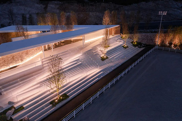 一半田園一半城,宜伴馬術(shù)宜伴家。盛暑七月,當(dāng)你走進(jìn)貴陽國際馬術(shù)運(yùn)動(dòng)中心,炎熱和煩躁在山與樓之間消解。對于一個(gè)騎手而言,涼爽、安靜、自然,便構(gòu)成了一個(gè)完美訓(xùn)練的開端。而對于一個(gè)馬術(shù)運(yùn)動(dòng)中心而言,宜人的氣候是成就錦衣上的最后一朵花。 當(dāng)馬術(shù)融于社區(qū) 人馬關(guān)系被重新定義 貴陽國際馬術(shù)運(yùn)動(dòng)中心是社區(qū)馬術(shù)在貴州的首次實(shí)踐。社區(qū)馬術(shù)創(chuàng)造了一種情境,在這里,居民和馬兒詩意地棲居在一起,業(yè)主踏出家門,至多十分鐘行至馬術(shù)中心,一幅田園生活畫卷便徐徐展開。 詩意的想法來自天馬行空的大腦,詩意的現(xiàn)實(shí)由勤勉耕耘的雙手編織。貴陽國際馬術(shù)運(yùn)動(dòng)中心馬術(shù)院長黃祖平回憶道:“祖平馬術(shù)和中鐵建的合作始于2017至2019年連續(xù)舉辦三年的中國鐵建杯馬術(shù)超級大獎(jiǎng)賽,全國最優(yōu)秀的騎手以及奧運(yùn)冠軍們都來到了成都的賽場。通過這個(gè)賽事,我們和中鐵建的合作更加深入和有機(jī)。后來,當(dāng)貴陽鐵建城在計(jì)劃之時(shí),中鐵建考慮到一場賽事難以持續(xù)性地對業(yè)主形成影響力,為了將馬術(shù)這項(xiàng)健康的運(yùn)動(dòng)植入社會(huì)、植入青少年的生活,便希望打造一個(gè)馬術(shù)運(yùn)動(dòng)中心。” 北京奧運(yùn)騎手、貴陽國際馬術(shù)運(yùn)動(dòng)中心馬術(shù)院長黃祖平 馬術(shù)進(jìn)社區(qū),一方面為業(yè)主提供了更多元的運(yùn)動(dòng)和生活方式,另一方面有利于馬術(shù)在更靠近大眾的地方推廣。 貴陽國際馬術(shù)運(yùn)動(dòng)中心依托貴陽鐵建城建造。在貴陽鐵建城,優(yōu)質(zhì)居民樓林立,濕地公園、農(nóng)場、時(shí)尚發(fā)布中心、商業(yè)街區(qū)、五星級酒店和學(xué)校與居民區(qū)創(chuàng)造著和諧的秩序。 天才大師達(dá)利藝術(shù)特展現(xiàn)場 貴陽國際馬術(shù)中心執(zhí)行主教練韓偉說:“最近,學(xué)員們結(jié)束了馬術(shù)訓(xùn)練,還可以步行五分鐘去時(shí)尚發(fā)布中心看‘天才大師達(dá)利藝術(shù)特展’,這是西班牙藝術(shù)大師薩爾瓦多·達(dá)利的121幅真跡作品展覽。對于藝術(shù)迷來說,達(dá)利就是他們心中的‘馬庫斯·恩寧’,他擁有最好的藝術(shù)天賦。” 大師匠作 兼顧專業(yè)和美感 黃祖平說:“貴陽國際馬術(shù)中心是四個(gè)團(tuán)隊(duì)聯(lián)合設(shè)計(jì)的,它兼具專業(yè)和美感。在開工之前,我們四個(gè)團(tuán)隊(duì)開過數(shù)次電話會(huì)。尤其是人流、人馬和車流的動(dòng)線,我們仔細(xì)研究過。車輛的進(jìn)入被嚴(yán)格控制,人流和人馬的動(dòng)線幾乎不會(huì)交匯。在交會(huì)的十字路口,我們也設(shè)計(jì)了足夠的空間和視野以確保人馬安全?!?/div> 貴陽國際馬術(shù)運(yùn)動(dòng)中心夜景 貴陽國際馬術(shù)運(yùn)動(dòng)中心由易墨、山水德比、上馬國際、中國鐵建·貴陽鐵建城四個(gè)團(tuán)隊(duì)聯(lián)手打造。占地12000平方米的馬術(shù)中心毗鄰飲馬湖,東北兩側(cè)是觀眾席和露臺(tái)。在主場地內(nèi)騎馬,碰上落日時(shí)分,太陽余暉透過云層迸出光輝,飲馬湖湖面反射出溫柔的點(diǎn)點(diǎn)星光,向西南仰頭所見之處是綠意蔥蔥的群山。室內(nèi)場也是比賽時(shí)的熱身場,即使是七月下旬,大多數(shù)時(shí)候騎手也無需躲進(jìn)室內(nèi)場訓(xùn)練。 東側(cè)的觀眾席設(shè)計(jì)匠心獨(dú)具,往來游玩的群眾可席地而坐,觀看馬術(shù)訓(xùn)練或比賽。一條“之”字形的小徑恰似遒勁的筆觸,在鱗次櫛比的階梯座席中開辟出一條舒適的通道,聯(lián)通高處的露臺(tái)和主場地旁的柏油小路。 觀眾席上的小徑 走進(jìn)馬房,幾縷陽光透過頭頂?shù)牟A齑罢者M(jìn)馬廄;假如是雨天,滴滴答答的雨點(diǎn)便在屋頂碎成一朵朵小花。每個(gè)寬敞的馬廄都有一扇大窗,窗戶被間距排列的橫梁分成若干窗格,在遮風(fēng)擋雨的玻璃和調(diào)皮的馬兒間構(gòu)筑了一個(gè)保護(hù)層。 貴陽國際馬術(shù)運(yùn)動(dòng)中心內(nèi)景 獸醫(yī)治療室、檢查圈、修蹄房、草料庫、配料間、洗馬區(qū)、走馬機(jī)等設(shè)施一應(yīng)俱全。談起服務(wù)設(shè)施,除了常規(guī)的會(huì)所、餐廳、更衣室、沐浴室、馬術(shù)用品及文化展示區(qū),這里特別設(shè)置的培訓(xùn)教室?guī)椭醮谓佑|馬術(shù)的孩子了解馬術(shù)與馬匹的基本知識(shí)。 或許誰也想不到如今空間錯(cuò)落有序的貴陽國際馬術(shù)中心以前是山體,它是被人為挖出來的空間。四個(gè)團(tuán)隊(duì)歷經(jīng)多年,憑借移山的精神,創(chuàng)造出了一方別致的天地。 祖平馬術(shù)產(chǎn)出教練和馬匹 系統(tǒng)且專業(yè) “推行社區(qū)馬術(shù)這種概念,我們需要大量的基層教練員。這些教練員需要經(jīng)過騎術(shù)、安全操作和青少年交流方式的訓(xùn)練?!秉S祖平提起貴陽國際馬術(shù)運(yùn)動(dòng)中心的教練員團(tuán)隊(duì)時(shí)如是說。 貴陽國際馬術(shù)運(yùn)動(dòng)中心的教練都至少在北京祖平馬房進(jìn)行過半年的馬房實(shí)踐、騎術(shù)和教學(xué)培訓(xùn)。值得一提的是,安全培訓(xùn)