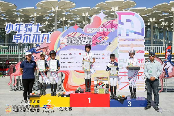 2022-2023賽季新浪杯未來之星馬術(shù)大賽總決賽暨2023年U系列奔跑吧少年-馬術(shù)親子運(yùn)動(dòng)會(huì)(北京馬協(xié)站) 長(zhǎng)城腳下,媯水河畔 隨著暑期即將結(jié)束,一年一度的國(guó)內(nèi)青少年馬術(shù)盛事——新浪杯未來之星馬術(shù)大賽總決賽也迎來了最終之戰(zhàn),在8月18-20日的三天賽程里,各級(jí)別的冠軍逐漸浮出水面。在2023年北京馬術(shù)季的主賽場(chǎng),冬奧頒獎(jiǎng)儀式所在地——世園公園國(guó)際館94朵巨大花傘前,各級(jí)別成績(jī)優(yōu)異的小騎手們接受著頒獎(jiǎng)的禮贊,也享受著冬奧冠軍般的榮耀。這種榮耀的疊加,或許會(huì)被小騎手們記憶,也是步入第十年的未來之星送給小騎手們最好的禮物。在未來之星十年之約如期上演的同時(shí),2023北京馬術(shù)季的大幕也正式拉開! 卓爾不凡 十年入畫 長(zhǎng)城腳下,媯水河畔,騎手們?cè)谑缊@公園地標(biāo)建筑下留下自己卓爾不凡、奮勇爭(zhēng)先的身影。 國(guó)際館的94把花傘成了天然的背景板,光影交錯(cuò),線條之間盡顯設(shè)計(jì)感。人馬一心,勇于挑戰(zhàn)的精彩瞬間被定格。一跳一躍之間,旁邊的美景成了一幅流動(dòng)的畫。一張定格的照片,便可講述太多太多關(guān)于十年的故事。 本屆未來之星總決賽共設(shè)置了場(chǎng)地障礙和盛裝舞步兩個(gè)項(xiàng)目,全方位展示小騎手的技藝。在18、19日的賽程為場(chǎng)地障礙比賽,共設(shè)置了交叉桿及50cm、60cm、80cm、90cm、80-100cm的師徒接力賽、100cm、110cm和120cm。20日則是盛裝舞步比賽,共設(shè)置CEA初?級(jí)、CEA中三級(jí)、CEA中?級(jí)(公開組)。 讓我們一起先來此次總決賽誕生了哪些冠軍騎手吧!