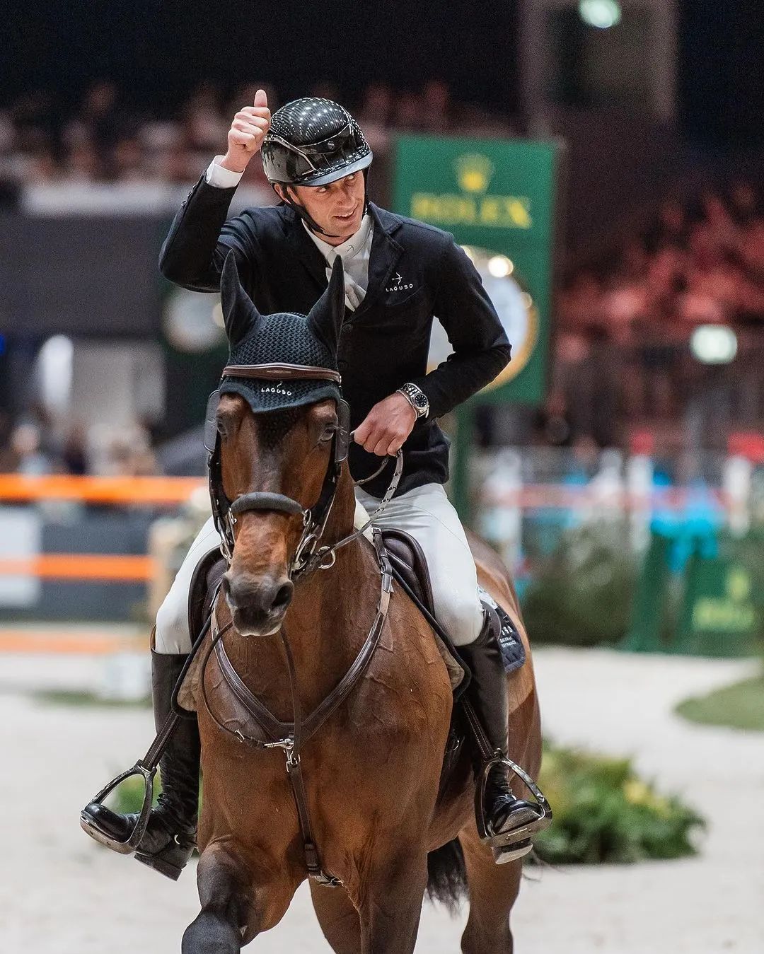 ?日內(nèi)瓦國際馬術(shù)節(jié)官媒 所有人都認同的一件事,那就是理查德·沃格爾(Richard Vogel)和“United Touch S”在日內(nèi)瓦國際馬術(shù)節(jié)勞力士大獎賽上的表現(xiàn)令人印象深刻。這位26歲的德國年輕騎手以令人意想不到的表現(xiàn),贏得了2023年日內(nèi)瓦國際馬術(shù)節(jié)勞力士大獎賽的冠軍。 本場比賽在北京市馬術(shù)運動協(xié)會、深圳市馬術(shù)協(xié)會、上海市馬術(shù)協(xié)會支持下,由《馬術(shù)》雜志、馬術(shù)在線特別策劃、引進直播版權(quán),面向全國觀眾進行了實時直播,觀看量過百萬。 2023年日內(nèi)瓦國際馬術(shù)節(jié)勞力士大獎賽直播現(xiàn)場 從左到右分別是主持人龐博、解說嘉賓張濱及琪琪木樂 嘉賓服裝提供:LONDA倫德馬服飾 冠軍理查德·沃格爾和亞軍馬克·麥考利(Mark Mcauley)以及季軍克里斯蒂安·庫庫卡(Christian Kukuk) ?日內(nèi)瓦國際馬術(shù)節(jié)官媒 用“黑馬”、“具有突破性的”、“神奇般空降的超強人馬組合”等語言,都不足以形容理查德·沃格爾和“United Touch S”這對人馬組合的表現(xiàn)。在12月10日晚上,他們的表現(xiàn)從各方面來講都是最好的。 冠軍理查德·沃格爾和馬匹“United Touch S” ?日內(nèi)瓦國際馬術(shù)節(jié)官媒 首先在第一輪路線難度極高,且允許時間緊張,僅有73秒的情況下,理查德·沃格爾和“United Touch S”能夠?qū)崿F(xiàn)障礙零罰分且保證時間控制在要求范圍內(nèi),已是非常不易。要知道比賽開始后,直到第15對人馬組合,也就是理查德·沃格爾和他的“United Touch S”完賽,才出現(xiàn)了首個零罰分,剩下的騎手不是出現(xiàn)了障礙失誤,就是出現(xiàn)了時間罰分,可見瑞士場地障礙路線設(shè)計師杰拉德·拉查特(Gérard Lachat)為在場的各位人馬組合所出的考卷難度是相當(dāng)大的。 瑞士路線設(shè)計師杰拉德·拉查特 ?Rolex Grand Slam 在理查德之后,勞力士代言人史蒂夫·戈爾達(Steve Guerdat)也完成了他較為完美的第一輪騎乘,零罰分完賽,全場爆發(fā)出雷鳴般的掌聲。今年的日內(nèi)瓦國際馬術(shù)節(jié)是屬于史蒂夫·戈爾達的,他獲得了2023年勞力士IJRC十強決賽的冠軍,又在勞力士場地障礙賽大滿貫10周年的慶祝活動中受到了“34場全勤模范”的表彰,在2023年日內(nèi)瓦國際馬術(shù)節(jié)勞力士大獎賽上,他再次彰顯實力,與“Dynamix de Belheme”完成了一輪零罰分,順利進入到附加賽。 2023年日內(nèi)瓦國際馬術(shù)節(jié)勞力士大獎賽,勞力士代言人史蒂夫·戈爾達與“Dynamix de Belheme” ?Rolex/Tom Lovelock 2023年CSIO云杉草地大師賽勞力士呈獻CPKC國際大獎賽的冠軍、勞力士代言人、瑞士騎手馬丁·福斯(Martin Fuchs)沒能繼續(xù)延續(xù)他在勞力士場地障礙賽大滿貫上的勝利,在倒數(shù)第二道障礙中失利,不幸遭遇4個障礙罰分而無緣附加賽。 勞力士代言人馬丁·福斯和馬匹“Lenoe Jei”在2023年日內(nèi)瓦國際馬術(shù)節(jié)勞力士大獎賽的比賽中 ?Rolex/Tom Lovelock 除了馬丁·福斯,其他頂尖的場地障礙騎手在面對場地障礙路線設(shè)計師給出的難題時,也都出現(xiàn)了不同程度的失誤。賽前的熱門人馬組合,東京奧運會場地障礙賽個人冠軍本·馬赫(Ben Maher)和他的10歲塞拉法蘭西母馬“Dallas vegas batilly”在失誤率第二高的最后一道障礙中失利,與他同樣在最后一道障礙中失利的還有其他5位國際優(yōu)秀騎手。國際馬聯(lián)排名第一的人馬組合西蒙·德萊斯特(Simon Delestre)和“Dexter Fontenis Z”在失誤率最高的倒數(shù)第二道單橫木障礙中失利,比賽結(jié)束時,除4個障礙罰分外,還有1個時間罰分。 2023年日內(nèi)瓦國際馬術(shù)節(jié)勞力士大獎賽,勞力士代言人杰西卡·斯普林斯汀(Jessica Springsteen)和馬匹“Don juan van de Donkhoeve” ? Rolex/Tom Lovelock 隨著比賽進程,后面又有幾對人馬組合脫穎而出,其中令人印象深刻是勞力士代言人、女騎手杰西卡·斯普林斯汀(Jessica Springsteen)和馬匹“Don juan van de Donkhoeve”以71.5秒零罰分進入了附加賽。最終,共有7位騎手順利路線設(shè)計師的考驗,參與附加賽的角逐。 冠軍理查德·沃格爾和馬匹“United Touch S” ?日內(nèi)瓦國際馬術(shù)節(jié)官媒 附加賽中,理查德·沃格爾和“United Touch S”率先出場,當(dāng)他開始催動馬匹,比賽變得驚心動魄起來。他和他的馬以令人難以置信的速度飛馳在賽場上,在一個難度較高的障礙銜接處,他只用了6步就與馬匹一躍而起,最終馬匹成功越過了障礙。零罰分,37.14秒! 冠軍理查德·沃格爾和馬匹“United Touch S” ?Rolex Grand Slam 這樣的成績無疑給后面的人馬組合帶來了巨大的壓力,勞力士代言人史蒂夫·戈爾達、“飛翔的法國人”朱利安·埃帕拉德(Julien Epaillard)都在嘗試打破理查德·沃格爾和“United Touch S”所創(chuàng)造的37.14秒的記錄,但都遺憾地在最難的那處障礙銜接之間走了7步,并在過程中失誤,遭遇了4個障礙罰分。 亞軍愛爾蘭騎手馬克·麥考利(Mark Mcauley)和馬匹“Grs Lady Amaro” ? Rolex/Tom Lovelock 最終理查德·沃格爾和“United Touch S”獲得了冠軍。愛爾蘭騎手馬克·麥考利(Mark Mcauley)和馬匹“Grs Lady Amaro”獲亞軍,德國騎手、來自魯?shù)赂瘛け葼桋U姆(Ludger Beerbaum)馬房的克里斯蒂安·庫庫卡(Christian Kukuk)和馬匹“Checker 47”摘得季軍。 賽后,沃格爾表示:“能在這里勝利我感到難以置信,日內(nèi)瓦國際馬術(s
