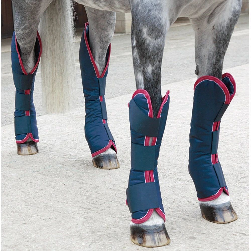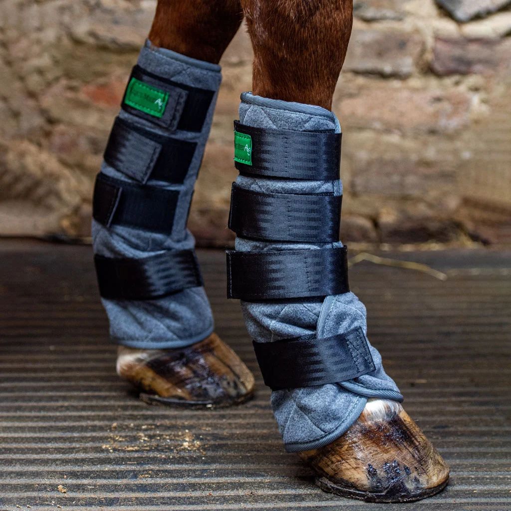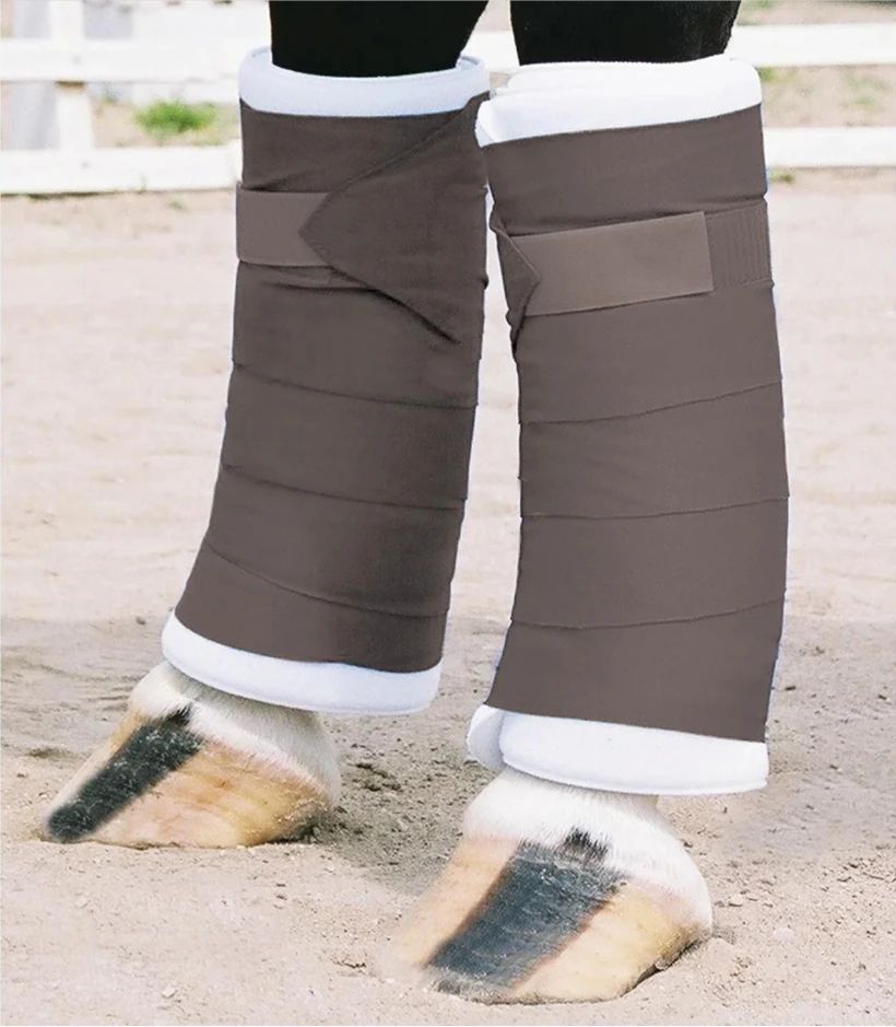 馬匹在運輸、訓練以及外出的時候經(jīng)常會用到護腿和綁腿。馬的前腿和后腿缺乏保護的肌肉,非常容易受傷。例如,馬的腿可能會相互碰撞,或者碰撞到其他物體上,而且馬如果長時間站立不動,也會出現(xiàn)腿部腫脹。