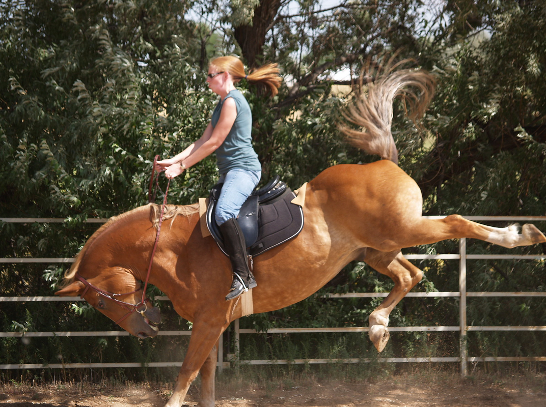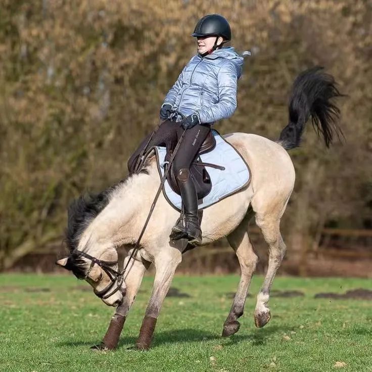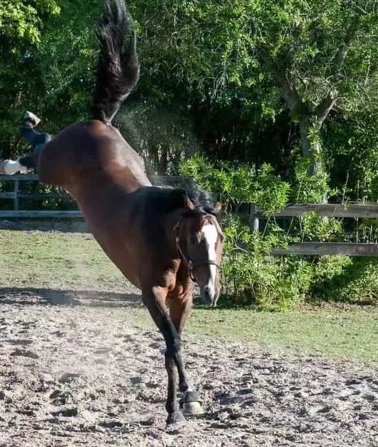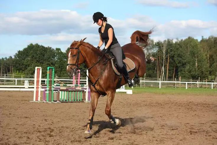 在學(xué)習(xí)馬術(shù)的過程當(dāng)中,騎手要與不同的馬匹打交道。這個(gè)過程當(dāng)中肯定會(huì)遇到叛逆小馬。每次上馬后,騎手不光要依靠自己的控馬能力,還要將自己的安危交到一匹比自己體型大數(shù)十倍的動(dòng)物身上,這是大部分初學(xué)者最為恐懼的情況,閱讀這篇文章,我們會(huì)提供幫助。 以下是騎手突然遇到馬匹蹦跳時(shí)處理方式: 1. 保持冷靜 2. “坐回來!” 3. 臀部、背部、大腿肌肉不要過于緊張 4. 嘗試?yán)瘃R頭 5. 使用單邊韁繩讓馬停止運(yùn)動(dòng) 要冷靜處理馬匹突然蹦跳需要大量的知識(shí)和實(shí)踐經(jīng)驗(yàn),該文章只提供知識(shí)部分,而獲取實(shí)踐經(jīng)驗(yàn)只有一種方法,那就是多騎多練。雖然這些知識(shí)無(wú)法完全保證騎手不會(huì)摔馬,但能幫助騎手克服和糾正馬匹蹦跳的行為。 說起來容易做起來難!所有騎手在面對(duì)這種情況時(shí)都會(huì)說:要保持冷靜,深呼吸!但當(dāng)騎手第一次面對(duì)馬匹突然蹦跳時(shí),由于事發(fā)突然,以至于可能連呼吸都忘記了,更別提深呼吸了。 話雖如此,把保持冷緊放在第一步,是因?yàn)榭梢苑潘杉∪?。騎手的第一反應(yīng)可能是拉緊韁繩,并夾緊雙腿試圖把自己固定在馬鞍上,但如果騎手身體僵硬,背部和臀部沒有跟隨馬匹的運(yùn)動(dòng)而運(yùn)動(dòng),就會(huì)失去平衡,落馬的概率大大增加,并且也會(huì)讓馬匹更加緊張而更激烈的反抗。 保持冷靜的第二個(gè)原因就是向馬匹傳達(dá)騎手并不緊張(雖然這時(shí)候騎手可能已經(jīng)緊張的快吐了)的訊息,馬匹能夠敏銳地捕捉到騎手的能量,如果騎手保持冷靜,此刻馬匹才更有可能恢復(fù)平靜,如果騎手驚慌失措,馬匹則會(huì)更加驚慌。 為了在馬蹦跳時(shí)使自己穩(wěn)定在馬背上,騎手需要向后坐,想象自己在馬鞍的后部,將髖部推進(jìn)馬鞍的最深處,保持肩膀朝后。馬匹蹦跳時(shí),騎手很容易被向前拋并掛在馬脖子上,一旦處于這種姿勢(shì),想再恢復(fù)平衡就會(huì)難上加難。 當(dāng)騎手向后坐時(shí),能夠?qū)⒅匦母菀椎胤€(wěn)定在馬背上,如果前傾的話重心將更多放在馬的肩膀上,這種姿勢(shì)很容易失去平衡。大腿緊張是造成前傾的主要原因,所以此刻騎手需要做的仍舊是放松大腿,讓身體跟隨馬匹的運(yùn)動(dòng)而移動(dòng)。 大多數(shù)馬匹在蹦跳時(shí),會(huì)把頭低下去,將大部分重心放在前腿,為揚(yáng)起后腿創(chuàng)造空間,所以騎手遇到蹦跳的馬匹時(shí),可以嘗試用韁繩拉起它們的頭,阻止它們重心前移,雖然這一方法不能完全阻止馬匹蹦跳,但在加以限制之后,它們無(wú)法獲得高高揚(yáng)起后腿的動(dòng)力,只能做出小幅度地蹦跳。 大部分時(shí)候,縮短韁繩就可以有效阻止馬匹蹦跳。 單韁停止可以被稱為馬匹緊急制動(dòng)器。馬匹的所有動(dòng)力都來源于它的后驅(qū),馬匹的后肢推動(dòng)它們向前運(yùn)動(dòng),當(dāng)騎手能夠控制它們的后驅(qū),就意味著可以控制它所有的運(yùn)動(dòng),包括原地蹦跳。單韁停止可以有效解除馬匹的后驅(qū)動(dòng)力,等于拆掉了它的發(fā)動(dòng)機(jī)。 在進(jìn)行單韁停止時(shí),騎手首先將單邊韁繩縮短,向外輕拉并往靠近自己臀部的方向拉回,使馬頸部彎曲,將馬頭拉向一側(cè)。 這個(gè)動(dòng)作的目標(biāo)是讓馬彎曲成一個(gè)緊湊的圓圈,在這個(gè)動(dòng)作下馬不得不交叉后腿。一開始馬可能會(huì)咬住銜鐵與騎手對(duì)抗,只需要保持施加穩(wěn)定的壓力即可。 單韁停止時(shí)馬應(yīng)該在這個(gè)緊湊的圓圈內(nèi)移動(dòng),但此刻它們有可能會(huì)歪著腦袋直線奔跑,也可能會(huì)停下來,甚至可能會(huì)后肢離地蹦跳,為了讓馬匹在圈內(nèi)移動(dòng),騎手可以用圓圈的內(nèi)方腳在略微靠后的地方施加壓力,鼓勵(lì)馬匹后軀移動(dòng)。 在遇到馬匹蹦跳時(shí),如果騎手跌落馬背,確認(rèn)沒有受傷后,一定要立刻重新上馬并讓它繼續(xù)工作,如果此時(shí)放棄,等于告訴馬,把騎手甩下馬背,它就可以回到舒服的馬房休息,于是馬就會(huì)養(yǎng)成習(xí)慣,矯正馬的喜歡要比矯正它突然地反應(yīng)要困難得多。 如果騎手摔得比較重,無(wú)法立刻上馬,也應(yīng)該用調(diào)教索給馬打圈,讓它活動(dòng)起來,更加努力地工作,這可以作為一個(gè)教訓(xùn),讓它知道把騎手甩下來對(duì)它沒有任何好處。 |