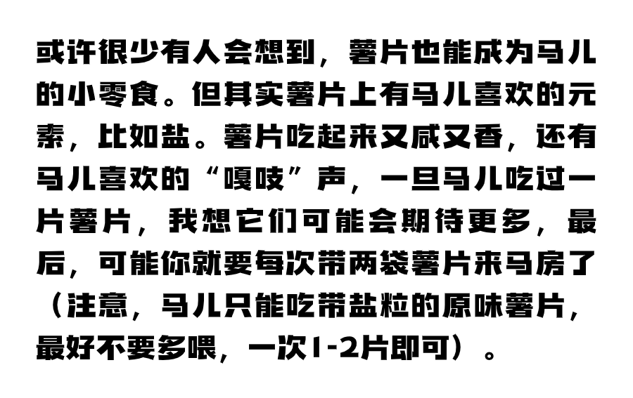 在騎乘完馬之后,愛馬的我們總想好好地款待一下我們的“毛孩子”,尤其是當(dāng)他們滿眼熱切地等待著我們的款待的時(shí)候。 很多時(shí)候我們都不想讓自己的“毛孩子”失望,但是方糖、胡蘿卜和馬餅干這些司空見慣的零食好像并不能完全表達(dá)出我們的喜愛,有時(shí)候,我們甚至還想給他們分享一下我們的食物!本文我們就推薦6種可以分享給馬的小零食。 以上食物對(duì)大部分馬兒友好,但是如果想確定食物是否適合馬兒,還是需咨詢相關(guān)專業(yè)人士,如獸醫(yī)以及了解馬兒的飼喂員。 當(dāng)然,即使馬兒喜歡也不能吃多,要注意量的控制!最后,一圖get馬兒究竟能吃什么,不能吃什么。 |