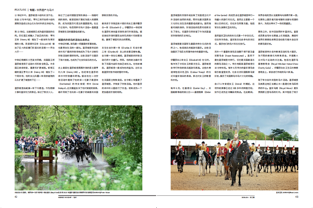 英國(guó)的溫莎城堡坐落在昔日日不落帝國(guó)一個(gè)迷人的鄉(xiāng)村小鎮(zhèn)上,這是世界上最古老的一直有皇室成員居住的城堡,也是人們?nèi)栽谏?/span>活和工作的最大規(guī)模的古堡。中世紀(jì)時(shí)期,騎馬是一項(xiàng)重要的軍事技能,也是貴族生活的一部分。溫莎城堡附近的森林和廣闊的狩獵場(chǎng)地成為了馬術(shù)訓(xùn)練和狩獵活動(dòng)的理想場(chǎng)所。這些活動(dòng)不僅展示了騎術(shù)技能,也成為了社交和娛樂的方式。史上最愛在溫莎城堡周圍狩獵的君主是亨利 八 世(Henry VIII)。 他 經(jīng) 常 在 溫 莎 的森林中狩獵鹿和野豬。據(jù)說他在一次狩獵活動(dòng)中遇到了他的第一任妻子凱瑟琳(Katherine) 的 侍 女 安 妮· 博 林(Anne Boleyn),這次邂逅加深了他對(duì)安妮的愛慕,最終導(dǎo)致了他與第一任妻子的離婚和英國(guó)宗教改革的開始。