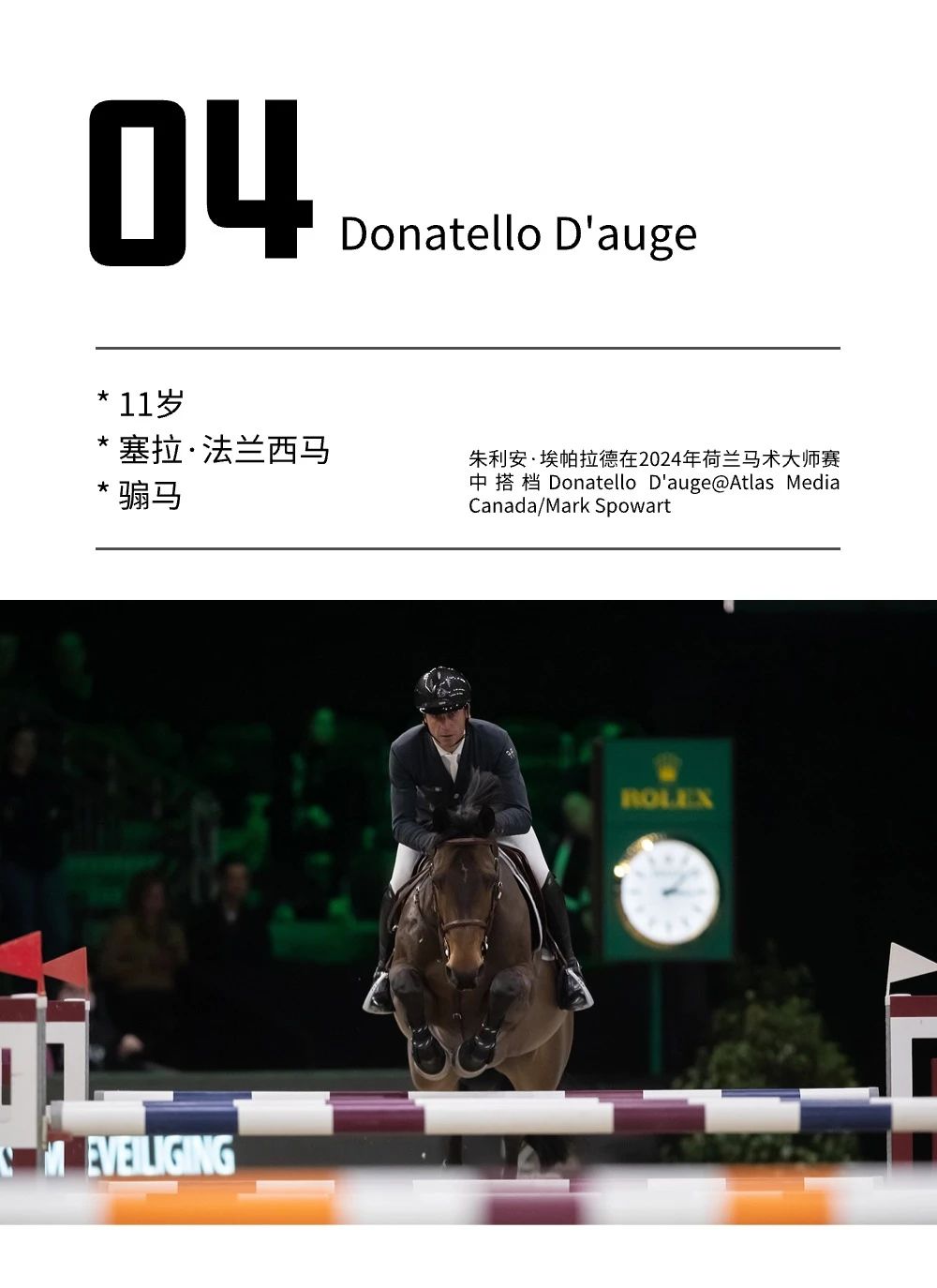 在年初,大家對(duì)于威廉·格雷夫(Willem Greve)和Highway TN N.o.p.這對(duì)人馬組合搭檔還并不熟悉,Highway一直作為威廉的備選主力馬,陪他征戰(zhàn)看起來(lái)不那么重要的比賽。但是在今年3月的荷蘭馬術(shù)大師賽勞力士大獎(jiǎng)賽中,這對(duì)賽前并不被看好的人馬組合,在附加賽最后關(guān)頭以0.04秒的成績(jī)逆襲世界排名第一的亨里克,奪得最終的勝利。那場(chǎng)勝利過(guò)后,威廉開(kāi)始將Highway帶到一號(hào)主力馬的位置,這匹12歲的荷蘭溫血公馬開(kāi)始了他和威廉的時(shí)代。根據(jù)Jumpr App統(tǒng)計(jì)(一個(gè)專注于國(guó)際場(chǎng)地障礙賽事人馬組合參賽數(shù)據(jù)統(tǒng)計(jì)的APP),這對(duì)人馬組合登上了30余次領(lǐng)獎(jiǎng)臺(tái),其中有近一半是冠軍的成績(jī);在近20場(chǎng)1.60M級(jí)別賽場(chǎng)上,Highway有69%是以前十名的成績(jī)完賽。 今年只有10歲的Cepano Baloubet是德國(guó)騎手理查德·沃格爾(Richard Vogel)的備選主力馬。去年,Cepano被Jumpr App評(píng)選為最具潛力九歲馬,在2023年度馬匹獎(jiǎng)金收入總榜單中,Cepano排名第九,是前十中年齡最小的一匹馬。這匹天才般的德國(guó)運(yùn)動(dòng)馬去年在6個(gè)月內(nèi)8次登上CSI4*和5*領(lǐng)獎(jiǎng)臺(tái),其中6次奪得冠軍。如此的成績(jī),或許以下的數(shù)據(jù)就不足為奇,根據(jù)Jumpr App統(tǒng)計(jì),在過(guò)去46場(chǎng)場(chǎng)地障礙大賽中,這對(duì)人馬組合在47%的1.60M級(jí)別取得零罰分,在1.55M和1.50M級(jí)別,這個(gè)數(shù)據(jù)分別是56%和50%。而他們?cè)?0%的1.50M和1.60M級(jí)別中以前十名成績(jī)完賽,在1.55M級(jí)別是75%。 愛(ài)爾蘭騎手丹尼爾·科伊爾(Daniel Coyle)從Legacy8歲時(shí)開(kāi)始與它搭檔。在Legacy的成長(zhǎng)中,丹尼爾給了它充足的時(shí)間和空間,在Legacy10歲時(shí),他們才開(kāi)始征戰(zhàn)1.50M及以上級(jí)別賽事。2022年,他們?cè)诼固氐づe行的FEI國(guó)家杯賽事中,為愛(ài)爾蘭隊(duì)贏得冠軍;2023年在云杉草地大師賽中,再次為愛(ài)爾蘭贏得團(tuán)體冠軍。但在FEI世界杯預(yù)選賽中,這對(duì)搭檔的表現(xiàn)才是真正的大放異彩:過(guò)去三年,他們?cè)诙鄠惗唷⑽炙贡と〉枚鄨?chǎng)勝利,在今年萊比錫、阿姆斯特丹和奧卡拉中,14歲的Legacy又為丹尼爾拿下多場(chǎng)勝利。根據(jù)Jumpr App數(shù)據(jù),這對(duì)人馬37次登上領(lǐng)獎(jiǎng)臺(tái),其中20次奪冠。在過(guò)去52輪1.60M級(jí)別比賽中,他們有42%的零罰分率,52%次進(jìn)入前十名。 瑞士騎手馬丁·福斯(Martin Fuchs),總是能碰到特別有天賦的青馬,從Clooney 51 到Leone Jei。五年前,在馬丁初次見(jiàn)到Leone Jei跳躍的視頻時(shí),被嚇了一跳:“一開(kāi)始看它跳的視頻,我并不看好。它的風(fēng)格有點(diǎn)滑稽,前腿是撐開(kāi)的,后腿的收腿也并不是很好?!瘪R丁最開(kāi)始并沒(méi)有看上這匹“蹬直腿”跳障礙的小馬,但相信馬主的眼光,決定給這匹小馬一個(gè)機(jī)會(huì)。事實(shí)證明,他沒(méi)看錯(cuò)人,也沒(méi)看錯(cuò)馬。五年后,這對(duì)人馬組合已然成長(zhǎng)為頒獎(jiǎng)臺(tái)的??停?021年歐錦賽團(tuán)體金牌和個(gè)人銀牌、迪納爾勞力士大獎(jiǎng)賽和日內(nèi)瓦國(guó)際馬術(shù)節(jié)勞力士大獎(jiǎng)賽冠軍、云杉草地大師賽CPKC國(guó)際大獎(jiǎng)賽冠軍,又在3月在美國(guó)奧卡拉的世界馬術(shù)中心的盧加諾鉆石大獎(jiǎng)賽(Lugano Diamonds Grand Prix)中奪冠……根據(jù)Jumpr App數(shù)據(jù),Leone Jei超過(guò)26次登上領(lǐng)獎(jiǎng)臺(tái),奪得超260萬(wàn)歐元的獎(jiǎng)金,在過(guò)去兩年里一直是這項(xiàng)運(yùn)動(dòng)中收入最高的馬匹之一。在64場(chǎng)1.60M級(jí)別賽事中,這對(duì)人馬組合在50%取得零罰分,在65%取得前十名的成績(jī)。 德國(guó)人21世紀(jì)在奧運(yùn)會(huì)場(chǎng)地障礙賽場(chǎng)上還沒(méi)拿到過(guò)金牌,他們很大一部分希望,都寄托在了菲利普·魏斯豪普特(philipp weishaupt)和他10歲的威斯特法倫馬Zineday身上。Zineday的父親是魯?shù)赂瘛け葼桋U姆(Ludger Beerbaum)的種公馬Zinedine,這匹德國(guó)神童在2023年登上亞琛世界馬術(shù)節(jié)勞力士大獎(jiǎng)賽領(lǐng)獎(jiǎng)臺(tái)后,就一直處于人們的關(guān)注之下。在年底,他們?cè)跉W錦賽上又摘得了個(gè)人銀牌,又幫助團(tuán)隊(duì)里森貝克國(guó)際隊(duì)(Riesenbeck International)在環(huán)球團(tuán)體冠軍賽中奪得勝利。菲利普在給Zineday安排比賽上,非常謹(jǐn)慎,2023年他們一共只參加了14場(chǎng)1.60M級(jí)別賽事。在他們最近8次登上領(lǐng)獎(jiǎng)臺(tái)的比賽中,這對(duì)人馬組合在累積了超過(guò)120萬(wàn)歐元的獎(jiǎng)金,在1.55M和1.60M級(jí)別中,均有75%的零罰分率。 法國(guó)騎手搭檔法國(guó)品種的馬,在法國(guó)巴黎奧運(yùn)會(huì)中創(chuàng)造奇跡。這聽(tīng)起來(lái)很傳奇,但在法國(guó)騎手朱利安·埃帕拉德(Julien Epaillard)心中,這或許就是他的目標(biāo)。11歲的塞拉·法蘭西母馬Dubai Du Cedre是朱利安目前的主力馬之一,這對(duì)人馬組合已經(jīng)14次登上領(lǐng)獎(jiǎng)臺(tái),其中11次是奪冠。去年,他們?cè)诎⒛匪固氐SI5*-W 1.60M大獎(jiǎng)賽中獲勝,又在LGCT布拉格超級(jí)大獎(jiǎng)賽中奪冠。根據(jù)Jumpr App數(shù)據(jù),2023全年賽事中Dubai的零罰