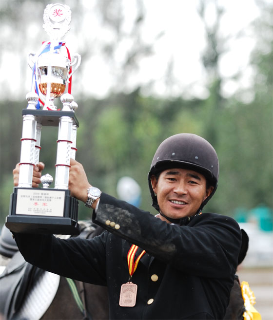 “秦時(shí)明月漢時(shí)關(guān), 萬(wàn)里長(zhǎng)征人未還。 但使龍城飛將在, 不教胡馬度陰山?!?/div> 王昌齡的《出塞》中,龍城飛將指的是西漢大將軍衛(wèi)青。小時(shí)候曾經(jīng)當(dāng)過(guò)馬夫(騎奴)的他,從一個(gè)低級(jí)的騎兵做起,打仗機(jī)智勇敢,身先士卒,最終開啟了漢朝對(duì)匈奴戰(zhàn)爭(zhēng)的新篇章。作為漢武帝時(shí)期抗擊匈奴的主要將領(lǐng),他七戰(zhàn)七捷,無(wú)一敗績(jī),為歷代兵家所敬仰。從馬夫到大將軍,衛(wèi)青飽嘗艱辛但最終取得了成功。而能從一個(gè)馬夫成為全國(guó)冠軍,從新疆走出來(lái)的“打工仔”沃帕·夏克加也在用自己的努力,創(chuàng)造著另一種成功之路。 一個(gè)打工仔的向往 在拍照的時(shí)候,沃帕似乎“不會(huì)笑”,但為了配合達(dá)到我們需要的效果,他一直在努力。對(duì)于自己的“不會(huì)笑”,沃帕不置可否,但是他很自然,很純真的眼神在告訴我,他在努力做到最好。 “有一個(gè)人很小的時(shí)候,因?yàn)榧依锔F,上不起學(xué),只能靠放牧來(lái)維持生計(jì)。在他14,5歲的時(shí)候,他的母親去世了,不得不走出打工。每個(gè)月賺的錢從來(lái)不敢多花,10塊錢也都要寄回給家里……”說(shuō)起來(lái),這個(gè)人就是沃帕自己,他指了指自己臉上的傷疤:“你看這些傷疤,都是小時(shí)候的回憶。那次我騎著馬偷偷跑出去玩,一個(gè)不小心從馬上跌落了下來(lái),但右腳還是掛在了馬蹬上,結(jié)果馬兒就這樣拖著我跑了一陣子才停下來(lái)。很多牧區(qū)的大人都看到了這一幕,以為我回去會(huì)告訴我爸。但害怕他會(huì)打我,我默默地忍了下來(lái)。過(guò)了幾天,有個(gè)人和我爸聊天問(wèn)起我身體情況,我爸才知道,后來(lái)的情況就可想而知了……”說(shuō)起小時(shí)候的事情,沃帕臉上掛著很自然地微笑,但是從微笑中,我能讀出他對(duì)走出當(dāng)年生活所奮斗的不易?!耙苍S是我從小就接觸馬,也許是生活的壓力所迫,讓我不得不為了生存而去努力進(jìn)步。當(dāng)然,如果沒有徐場(chǎng)長(zhǎng)以及運(yùn)動(dòng)場(chǎng)給我的機(jī)會(huì),可能我也無(wú)法打到今天的成績(jī)。”沃帕的話語(yǔ)中,總是充滿著感謝之心,一種很質(zhì)樸地感激。 沃帕上馬的時(shí)間很早,在新疆伊犁中馬場(chǎng)長(zhǎng)大的他從小就幫著家里放牧,不知不覺間學(xué)會(huì)了騎馬:“我也不知道自己什么時(shí)候?qū)W會(huì)騎馬的,那時(shí)候幫家里放牧就得騎馬,可以說(shuō)我是在馬背上長(zhǎng)大的吧?!?994年,15歲的沃帕走出家鄉(xiāng)來(lái)到北京打工,也開始了他背井離鄉(xiāng)與馬術(shù)的十七年不解之路。從1994年到1997年,沃帕一直在北京工作。在今天看來(lái),那里或許叫一個(gè)游樂場(chǎng)更為合適?!爱?dāng)時(shí)我做馬上服務(wù)員,就是教那些來(lái)騎馬的人一些簡(jiǎn)單的方法。”沃帕說(shuō):“打工的生活很苦,但能走出來(lái)看看,我還是挺高興的。不過(guò),眼界越寬,自己內(nèi)心向往的東西也就越來(lái)越多。那個(gè)時(shí)候,特希望自己可以去正規(guī)馬術(shù)俱樂部工作,能夠接觸到真正的騎馬?!?/div> 1997年,一次偶然的機(jī)會(huì),沃帕聽說(shuō)了上海為了八運(yùn)會(huì)專門建立了上海馬術(shù)運(yùn)動(dòng)場(chǎng),有心的沃帕在親戚的幫助下,經(jīng)過(guò)幾番周折進(jìn)入了上海馬術(shù)運(yùn)動(dòng)場(chǎng)工作?!澳菚r(shí)候他們招飼養(yǎng)員,由于我從小就跟馬打交道,加上在北京工作過(guò)一段時(shí)間,于是上海馬術(shù)運(yùn)動(dòng)場(chǎng)就把我招了進(jìn)來(lái)。”沃帕說(shuō):“那時(shí)真的是懷揣著向往,我想我要特別感謝徐根發(fā)場(chǎng)長(zhǎng)給我的這個(gè)機(jī)會(huì),因?yàn)橹挥挟?dāng)你真正接觸到正規(guī)馬術(shù)的時(shí)候,你才會(huì)知道其中的奧妙以及巨大的魅惑?!?/div> 不同尋常的騎手路 回憶起當(dāng)年和馬術(shù)運(yùn)動(dòng)場(chǎng)一起成長(zhǎng)的日子,如今已在上海成家立業(yè)的沃帕依舊歷歷在目。當(dāng)時(shí)上海馬術(shù)運(yùn)動(dòng)場(chǎng)從香港進(jìn)了一些馬匹,同時(shí)也來(lái)了幾個(gè)教練、馬房管理員、調(diào)教員等,他們一邊打理馬匹,一邊給馬術(shù)運(yùn)動(dòng)場(chǎng)的人進(jìn)行培訓(xùn),沃帕就是跟著他們學(xué)會(huì)了怎么調(diào)教馬匹和飼養(yǎng)馬匹。沃帕每天負(fù)責(zé)刷馬、喂食,照顧馬匹的起居飲食。憑著對(duì)馬兒的熟悉和用心,他很快成了上海馬術(shù)場(chǎng)的優(yōu)秀飼養(yǎng)員,經(jīng)他調(diào)教的馬兒,匹匹都毛色锃亮,氣宇軒昂。每天工作做完之后,沃帕就會(huì)倚在訓(xùn)練場(chǎng)的欄桿上,靜靜地看著專業(yè)騎手們訓(xùn)練著一匹匹高頭大馬。 八運(yùn)會(huì)之后,上海馬術(shù)運(yùn)動(dòng)場(chǎng)需要補(bǔ)充一些新騎手,沃帕的機(jī)會(huì)來(lái)了。當(dāng)然,機(jī)會(huì)總是留給有準(zhǔn)備的人,而沃帕的準(zhǔn)備工作其實(shí)從一進(jìn)上海馬術(shù)運(yùn)動(dòng)場(chǎng)就開始了。每天在做完自己的工作后,沃帕就會(huì)去跟著騎手們偷學(xué)一些知識(shí),看他們?nèi)绾斡?xùn)練,如何給學(xué)員教課等?!昂髞?lái)我也管騎手們要一些馬來(lái)練練,當(dāng)然首先還是要把