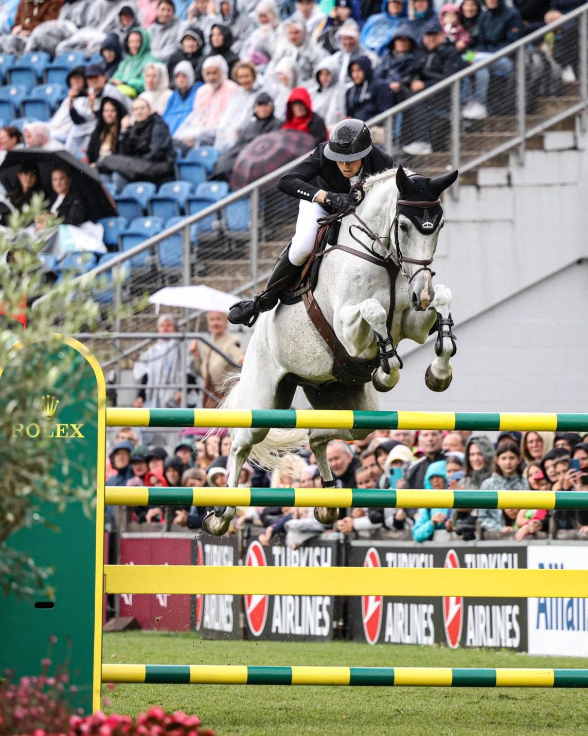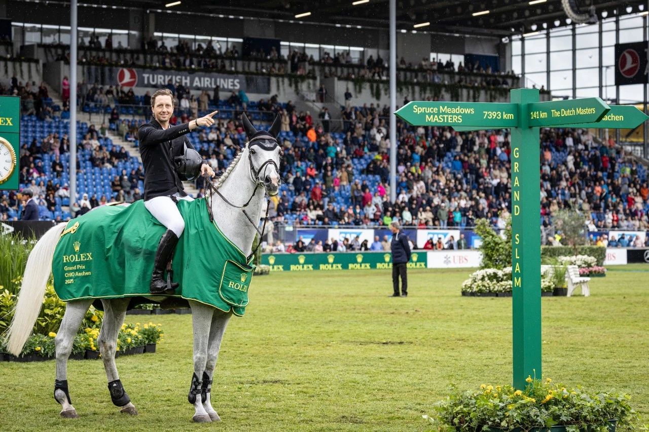 ?Rolex Grand Slam - Ashley Neuhof 亞琛,這座被譽為“世界馬術之都”的城市,每年夏天都吸引著全世界最頂級的人馬組合前來一決高下。2025年的勞力士大獎賽,馬丁·福斯(Martin Fuchs)終于在這片草場上,留下了屬于自己的榮耀時刻。 —————————————— 對于每一位場地障礙騎手來說,贏下亞琛,就等于在職業(yè)生涯中畫上濃墨重彩的一筆。這一次,馬丁·福斯與他的老搭檔“Leone Jei”,在三輪比賽中表現(xiàn)無可挑剔,最終加冕冠軍,成為歷史上首位贏下5場勞力士大獎賽的騎手。至今勞力士大滿貫唯一獲得者斯科特·布拉什(Scott Brash)也僅僅贏得過4場勞力士大獎賽而已。 01 草地上的“雨中曲” 在近四屆亞琛世界馬術節(jié)勞力士大獎賽中,贏得冠軍都是德國騎手,而今年參賽選手中,超過四分之一都來自東道主德國,因此觀眾們都很期待德國選手能再次奪冠。 今年第一輪的路線設計,整體上對于小步伐的馬匹更有利。值得一提的是,在集中注意力跳過第四道abc組合障礙之后,很快就會迎來兩道利物浦。因為障礙之間的距離短,加上當天降雨,雨水不斷影響著水面的狀態(tài),很多馬匹在這兩道障礙前顯得尤為緊張。 盡管所有參賽人馬組合在出征前,都會針對利物浦進行專門訓練,但現(xiàn)場與練習場永遠有差距。尤其是在亞琛這樣的大賽環(huán)境里,任何微小的不安都可能被無限放大。 在雨中走路線的騎手們 ?Diana Wahl 衛(wèi)冕冠軍安德烈·蒂姆率先登場,但不幸打落一桿,獲得4罰分。緊隨其后的前三項賽騎手桑德拉·奧法特(Sandra Auffar)謹慎登場,順利完賽,但因用時過長而被扣掉一分。 而作為第七位出場的馬丁·福斯,搭檔“Leone Jei”以流暢、冷靜、零罰分的表現(xiàn),完成了這輪比賽,獲得全場首個零罰分。對于馬的信任和篤定,貫穿于他的每一次助跑與起跳。 緊隨其后出場的,是剛剛從傷病中恢復的史蒂夫·戈爾達(Steve Guerdat),以零罰分、90.25秒,暫列第二,現(xiàn)場為之沸騰。而主場作戰(zhàn)的德國騎手格里特·尼伯格(Gerrit Nieberg)搭檔他獨特的花馬“Ping Pong”,也順利拿下零罰分。躍過最后一道障礙落地后,場邊爆發(fā)出驚嘆與吶喊,那是屬于騎手與馬的最高禮贊。 在第一輪中,如果騎手打了一桿,他們通常會選擇努力爭取“4罰分中的最短時間”,因為排名前18才能進入第二輪,在相同罰分下,時間將成為決定性因素。這也是頂級賽事中常見的戰(zhàn)略性選擇。 02 11對人馬組合獲得兩輪零罰分,女性騎手有4位 第二輪的路線整體更適合步伐大的馬匹。勞力士大獎賽的傳統(tǒng),依舊被保留——在最后一道或倒數(shù)第二道設置帶黃板的勞力士障礙,這不僅是障礙設計,更像一種象征:只有真正的王者,才能跨過這道“榮譽之門”。 ?jasminmetzner_fotografie 不知道是不是因為下雨地面濕滑,使得路線設計師手下留情,降低了路線難度。絕大多數(shù)在第一輪零罰分的人馬組合,在第二輪也穩(wěn)住了節(jié)奏,取得零罰分。不過,備受矚目的世界排名第一騎手肯特·法靈頓(Kent Farrington)卻在關鍵時刻出現(xiàn)遺憾失誤,打落一桿,未能進入附加賽。 值得一提的是,很多年輕騎手初登亞琛賽場,反而會超常發(fā)揮,取得好成績。因為他們的注意力會高度集中,不容自己出現(xiàn)絲毫分神。 此時,比賽氛圍愈發(fā)緊張。每一次鈴響,都牽動著全場觀眾的呼吸。 03 最后關頭被趕超的可能性也許不大,但一定不是0 今年進入 jump-off 的11對人馬組合中,有4位女性,展現(xiàn)了女性騎手在世界頂級場地障礙賽場上的堅韌與力量。 在馬丁·福斯與“Leone Jei”出場時,現(xiàn)場安靜得只剩下雨點和馬蹄落在草場上的聲音。他們完美完成全程,以三輪零罰分的領先成績,暫居冠軍。 隨后出場的騎手,都企圖趕超,但都紛紛在罰分與速度之間顧此失彼。 轉眼間來到最后一對出場的人馬組合,美國騎手勞拉·克勞特(Laura Kraut),搭檔“Baloutinue”,她是最后也是最有可能阻止馬丁·福斯奪冠的騎手。 勞拉·克勞特,搭檔“Baloutinue”在亞琛賽場上疾馳?pierredeconinckmedia 只見鈴響后她便策馬飛馳。她的路線緊湊、速度極快,馬蹄落地的聲音十分干脆有力,全場觀眾都屏住呼吸,最終僅以落后2.12秒之差獲得亞軍,獲得30萬歐元的獎金。 而今年,勞拉·克勞特已經(jīng)60歲。她用實力證明,在馬術的賽場上,年齡從來不是限制,唯有熱愛與堅持才是底色。 看到勞拉·克勞特完賽后,一直在馬上緊張關注賽事的馬丁·福斯才終于確定自己穩(wěn)拿冠軍,如釋重負地松了口氣,激動地與家人相擁。 賽后,馬丁·福斯難掩激動:“亞琛是每一位騎手的夢想,我從小就渴望在這里贏下大獎賽。今天,這個夢想終于實現(xiàn)了。”他還表示,那道金色組合障礙對他來說是最難的部分,不過他一直堅信,“Leone Jei”是一匹能贏下這場比賽的馬,心懷這樣的信念與信任,一人一馬最終取得了勝利。 此前,他的四場勞力士大獎賽勝利分別來自加拿大卡爾加里(3場)與日內(nèi)瓦(1場)。如今,亞琛的獎杯,讓他的榮耀更加完整。這也是一次突破,讓他離勞力士場地障礙大滿貫的榮譽更近了一步。 ?Rolex 這就是亞琛世界馬術節(jié)勞力士大獎賽,一場屬于騎手與馬匹、屬于榮耀與夢想的比賽。 有人圓夢,有人遺憾,但無一例外,每一對人馬組合,都在這片草場上,留下了自己的印記。 恭喜馬丁·福斯,終于在亞琛登頂,也感謝所有騎手與馬,為我