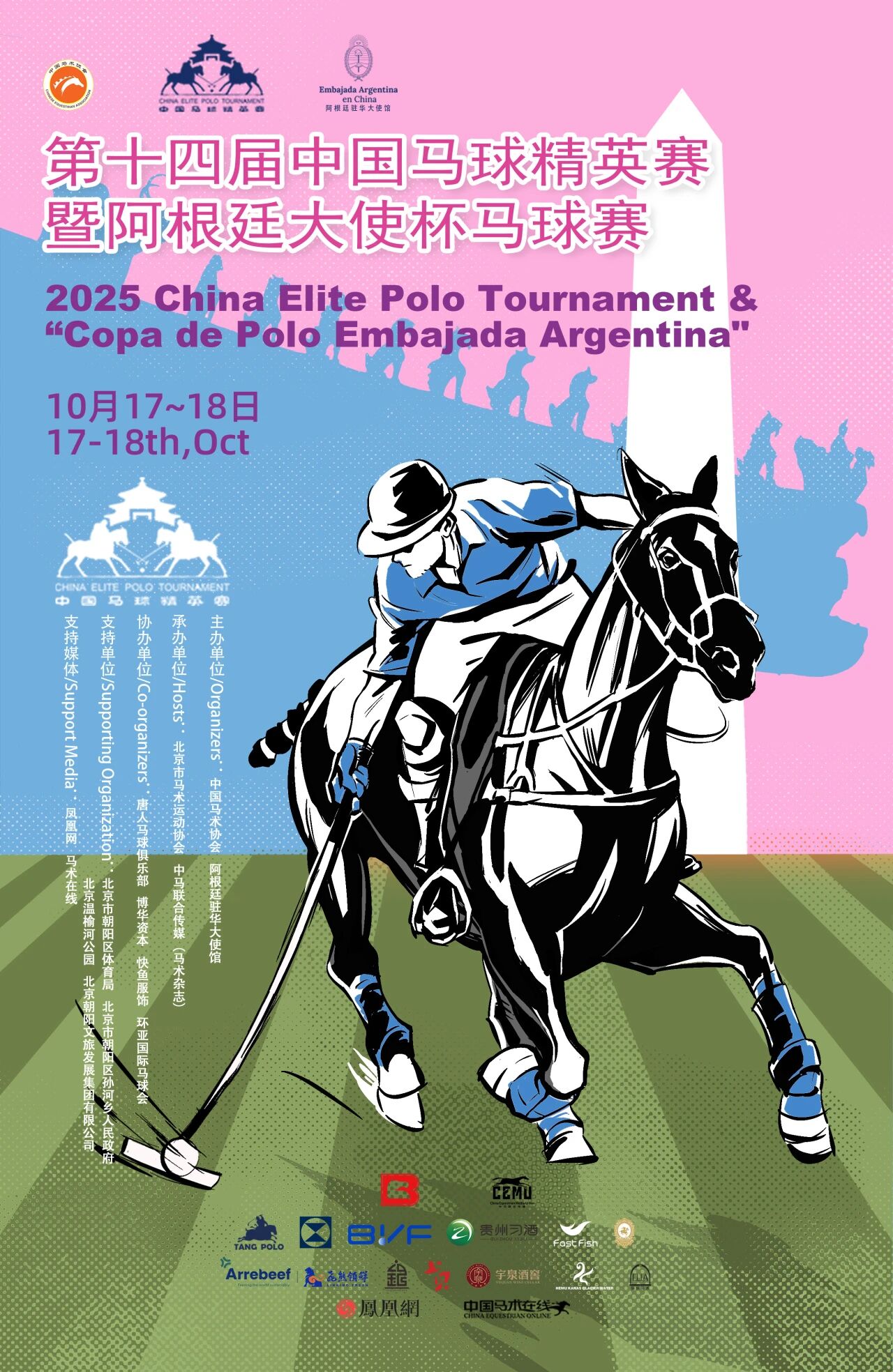 2025年10月17日至18日,第十四屆中國馬球精英賽暨阿根廷大使杯馬球賽將于北京市朝陽區(qū)溫榆河公園 · 北京市馬術(shù)運(yùn)動協(xié)會馬球賽事中心盛大舉行。 屆時(shí),綠茵草場上,駿馬奔騰、球槌揮舞,一場融合競技與文化的秋日馬球盛宴即將啟幕。 精英薈萃,共襄盛舉 本屆賽事由中國馬術(shù)協(xié)會與阿根廷駐華大使館聯(lián)合主辦,北京市馬術(shù)運(yùn)動協(xié)會與中馬聯(lián)合傳媒(《馬術(shù)》雜志)承辦,唐人馬球俱樂部、博華資本、快魚服飾、環(huán)亞國際馬球會協(xié)辦,獲得了北京市朝陽區(qū)體育局、北京市朝陽區(qū)孫河鄉(xiāng)人民政府、北京溫榆河公園及北京朝陽文旅發(fā)展集團(tuán)有限公司的大力支持。賽事媒體合作伙伴為鳳凰網(wǎng)與馬術(shù)在線。 作為中國高水平馬球賽事之一,中國馬球精英賽自2008年創(chuàng)辦以來已成功舉辦十三屆,成為國內(nèi)馬球界認(rèn)可的年度經(jīng)典賽事。 2025年第十四屆賽事將在延續(xù)傳統(tǒng)的基礎(chǔ)上,以更國際化的姿態(tài)、更高規(guī)格的標(biāo)準(zhǔn),為觀眾呈現(xiàn)速度與優(yōu)雅并存的馬球盛宴。 以馬為媒,傳遞友誼 馬球不僅是一項(xiàng)體育競技,更是一種溝通文化的語言。 中國的馬球文化可追溯至千年之前的漢唐時(shí)代,歷史悠久、底蘊(yùn)深厚;阿根廷的馬球競技水平在世界馬球領(lǐng)域占據(jù)著領(lǐng)先地位,擁有無與倫比的傳統(tǒng)與技藝。 第十四屆中國馬球精英賽暨阿根廷大使杯馬球賽,承載著促進(jìn)中阿兩國文化交流與友誼的使命。來自中國與阿根廷兩國的馬球手將組隊(duì)同場競技,在綠茵草場上“以球會友、以馬傳情”,展現(xiàn)這項(xiàng)運(yùn)動的獨(dú)特魅力與精神內(nèi)核。 文化與競技的交匯點(diǎn) 第十四屆中國馬球精英賽暨阿根廷大使杯馬球賽,以馬為橋梁,以馬球?yàn)榧~帶,讓世界看到中國馬球的蓬勃生機(jī)與文化自信。