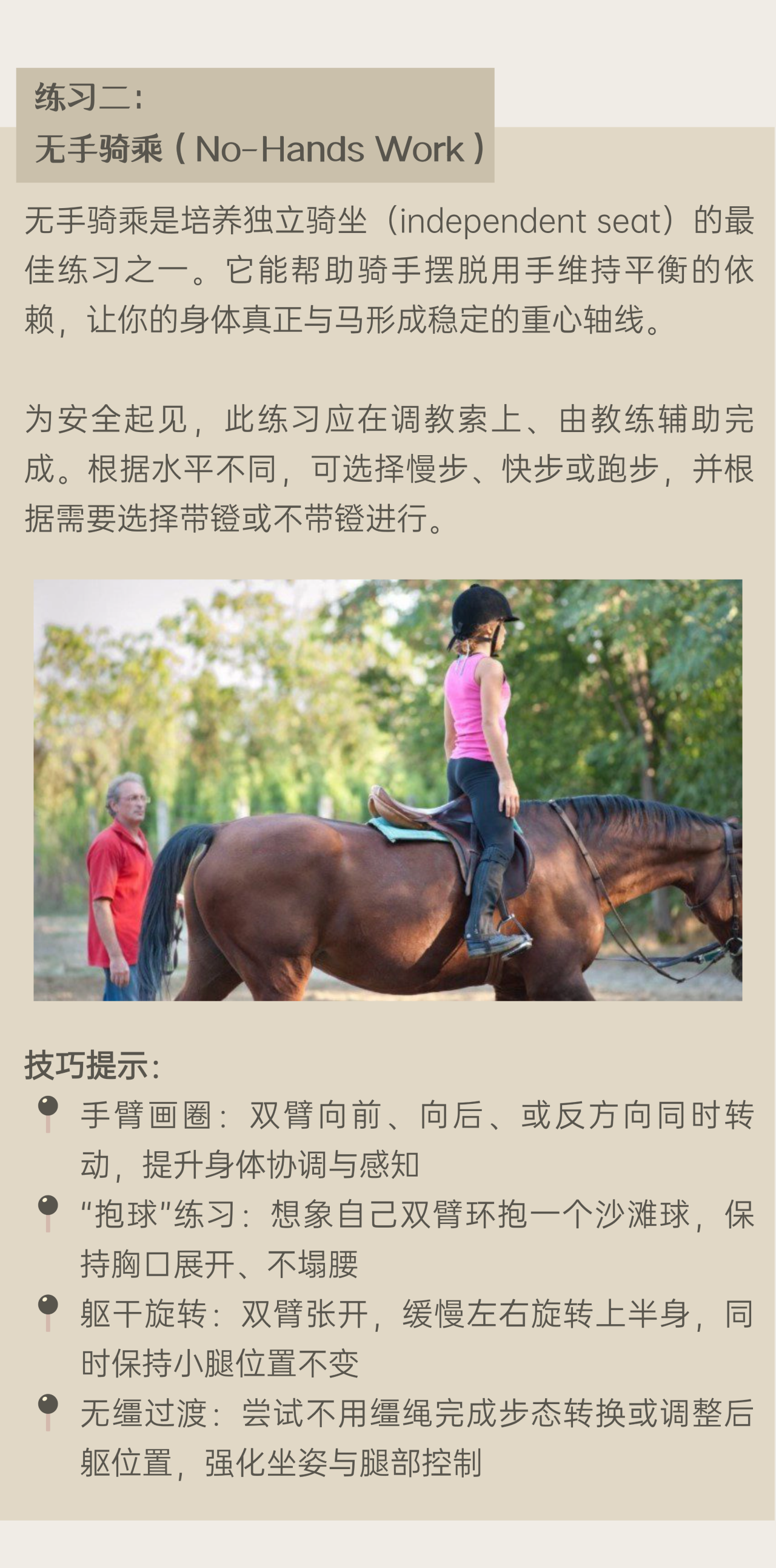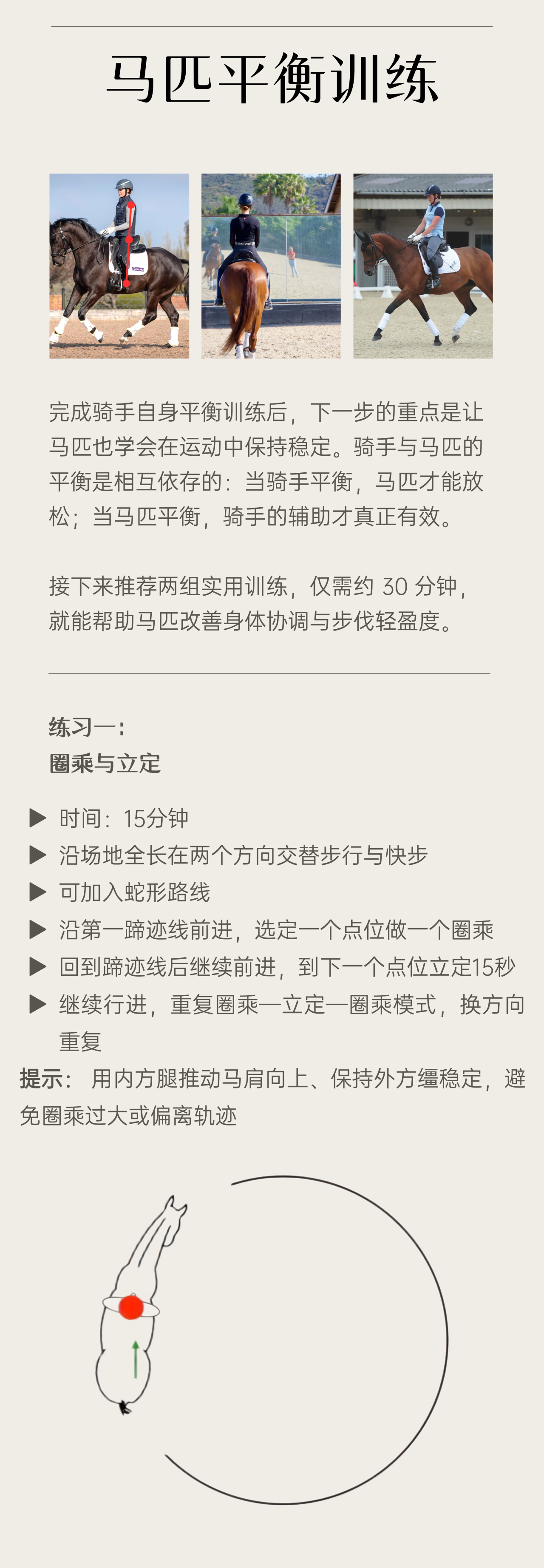 學(xué)習(xí)如何在騎乘中改善平衡,是成為一名高效騎手的基礎(chǔ)。無論是在復(fù)雜的障礙賽場上追求高度與精準(zhǔn)、在盛裝舞步中追求優(yōu)雅動作,還是只是享受一段輕松的林間騎行,騎手能否保持身體居中、穩(wěn)定、與馬匹相連,是實(shí)現(xiàn)人與馬溝通的關(guān)鍵。 然而,真正的平衡并非一蹴而就,即使對經(jīng)驗(yàn)豐富的騎手來說,這也是一個持續(xù)探索的過程。 平衡訓(xùn)練的核心,不是追求某個標(biāo)準(zhǔn)姿態(tài),而是培養(yǎng)“感知力”。當(dāng)騎手學(xué)會通過核心去穩(wěn)定、通過腿去引導(dǎo)、通過騎坐去溝通,馬匹也會在你的身體信號中獲得安全感與方向感。 |