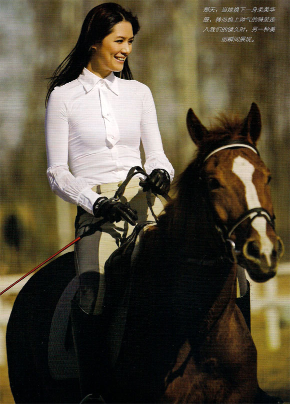 從賽艇運(yùn)動(dòng)員到名模,從名模到設(shè)計(jì)師,馬艷麗的每一次轉(zhuǎn)型都完美得無(wú)懈可擊。身為幸福工程的形象大使,她說(shuō),人的一生中會(huì)有不同的過(guò)程,每個(gè)過(guò)程都應(yīng)該有不同的意義和價(jià)值。于是,她下定決心為幸福工程做一輩子義務(wù)的打工者。她一手創(chuàng)辦的高級(jí)定制品牌Mary Ma,不僅以自己的名字命名以示紀(jì)念,更重要的是,她讓定制成為一種生活態(tài)度,“定制不一定就要完全打上‘奢侈’的標(biāo)簽,它更多的是代表了一種生活方式,”她說(shuō)。這就是馬艷麗,曾被靳羽西譽(yù)為“亞洲最美麗的女人”,賦予了“美麗”二宇更深刻的含義。那天,當(dāng)她換下一身柔美華服,轉(zhuǎn)而換上帥氣的騎裝走入我們的鏡頭時(shí),另一種美麗瞬間展現(xiàn)。 野·美麗 你知道,很多時(shí)候眼神是可以出賣(mài)一切的。 可能是因?yàn)橄騺?lái)低調(diào)的作風(fēng),馬艷麗很少開(kāi)口說(shuō)話,采訪也是有問(wèn)才答,倒是她的貼身助理在挑馬前一直在囑咐,你們一定要保證她的安全,她雖然喜歡但不是經(jīng)常騎...... 為了拍照,攝制組挑了一匹比較有型的馬,騎師在馬場(chǎng)里活動(dòng)了幾圈,馬有些躁動(dòng),想起助理的話,我們還是擔(dān)心地問(wèn)了一下,“您覺(jué)得它可以嗎?”“嗯,沒(méi)問(wèn)題?!蔽覀儽凰龍?jiān)定的回答唬了一下,不明白她是向來(lái)膽大,還是確實(shí)心里有底。倒是她那鎮(zhèn)定的眼神,給了我們不容置疑的肯定。 整個(gè)過(guò)程相當(dāng)順利,本以為這是她曾身為模特的特質(zhì),但攝影師說(shuō) “她就是在生活,與拍攝無(wú)關(guān)?!边@讓人突然注意到,鏡頭前一身騎裝的她那么自然地與馬兒親近著,不退卻、不躲閃,像極了一個(gè)老騎士在寵溺著自己的坐騎。翻身上馬,利落的身手,一招一式都做得有板有眼,在馬場(chǎng)里絲毫不覺(jué)遜色。 對(duì)于教練的夸獎(jiǎng),馬艷麗也只是淺笑著說(shuō),或許是因?yàn)橹熬氝^(guò)體育的關(guān)系,協(xié)調(diào)性好,所以只要是和運(yùn)動(dòng)有關(guān)的項(xiàng)目,像高爾夫、馬術(shù),她都比一般人學(xué)得快,而且學(xué)得好,這完全是天賦使然。對(duì)于自己第一次騎馬的情形,對(duì)她來(lái)說(shuō),已經(jīng)過(guò)去十年了,但仍歷歷在目,因?yàn)槟欠N怦然心動(dòng)的感覺(jué)并不見(jiàn)得時(shí)常有,而她很慶幸能有機(jī)會(huì)遇到這么一項(xiàng)美好的運(yùn)動(dòng),并一直堅(jiān)持至今。 “那是1997年某一天的傍晚,我和幾個(gè)老師、同事借著演出的機(jī)會(huì)去參觀‘天下第一城’。在我們吃小吃的店旁邊正好有個(gè)馬場(chǎng),里面是當(dāng)?shù)剞r(nóng)民圈養(yǎng)的馬。馬場(chǎng)不是很大,但很漂亮,和現(xiàn)在專業(yè)的馬場(chǎng)相比起來(lái)一點(diǎn)也不遜色。”馬艷麗回憶道。那時(shí)候從沒(méi)有騎過(guò)馬的她,醉心于眼前的美景,于是躍躍欲試?!拔因T著馬順著一個(gè)斜坡一直向下走,馬越走越快,后來(lái)甚至有點(diǎn)小跑,一直跑過(guò)條小溪。記得那時(shí)候是秋天,一路上風(fēng)景很美,但其實(shí)當(dāng)時(shí)真的很危險(xiǎn),如果馬快跑起來(lái),沒(méi)有任何經(jīng)驗(yàn)的我是很容易出事的,所以感覺(jué)那時(shí)候的自己好勇敢。”她笑道。或許因?yàn)闊o(wú)所畏懼,或許因?yàn)橐环N征服感,第一次騎馬的經(jīng)歷就讓馬艷麗深深愛(ài)上了它,并且從此一發(fā)不可收拾?!澳欠N在馬背上迎風(fēng)飛馳的感覺(jué)真的很享受,無(wú)法言喻。” 一年后一次偶然的機(jī)會(huì),讓她再次體驗(yàn)馬兒飛奔時(shí)帶來(lái)的刺激。1998年,她剛到北京,舉目無(wú)親,于是她到懷柔去看個(gè)親戚?!澳抢镉幸粋€(gè)很大的馬場(chǎng),雖然那時(shí)候我的技術(shù)不是很好,或者應(yīng)該說(shuō)毫無(wú)技術(shù)可言,但仍舊無(wú)法抵抗那種吸引。”她說(shuō)。其買(mǎi),那是一個(gè)很唯美很浪漫的畫(huà)面,一個(gè)美麗的少女騎在馬背上,迎著風(fēng),馳騁著,一頭飄逸的長(zhǎng)發(fā)在風(fēng)中飄散,夕陽(yáng)西下,點(diǎn)點(diǎn)斑駁的陽(yáng)光映射在身上,如同女神從天而降。但對(duì)馬艷麗來(lái)說(shuō),真實(shí)的情況并沒(méi)有描述中那么美好,當(dāng)時(shí)整個(gè)空曠的馬場(chǎng)就只有她一個(gè)人在飛奔。“剛開(kāi)始只是坐在馬背上,后來(lái)慢慢地行進(jìn)中,再后來(lái)它突然開(kāi)始奔跑起來(lái),一連跑了三圈,速度很快,讓我措手不及,唯一的本能反應(yīng)就是緊緊地抓住韁繩?!彼龓е稽c(diǎn)后怕說(shuō)道。當(dāng)她從馬背上下來(lái)時(shí),發(fā)現(xiàn)自己的雙手已經(jīng)全部破皮,并且還冒出血絲,當(dāng)時(shí)在馬背上的她,卻緊張到一點(diǎn)感覺(jué)都沒(méi)有,完全沉浸在速度的快感中?!半m然很危險(xiǎn),但很讓人享受。”她微笑。 美·和諧 曾經(jīng),一次意外,差點(diǎn)讓她想要放棄騎馬,但心中卻是萬(wàn)分不舍。“那是1999年在拍《傾城之戀》的時(shí)候,當(dāng)時(shí)有場(chǎng)戲是我和馬曉偉并排騎著馬。導(dǎo)演在前面的車(chē)上,可能是之前與馬的溝通不夠充分,我騎的馬一直很緊張,加上我對(duì)馬的控制能力不是很強(qiáng)。于是,在車(chē)子開(kāi)動(dòng)的時(shí)