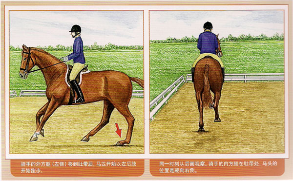 馬匹在左跑步和右跑步時(shí),四肢落地的順序是不同的。騎手應(yīng)充分理解以便正確運(yùn)用跑步輔助。當(dāng)馬匹向右行進(jìn)時(shí),首先是左后蹄著地,然后是右后和左前蹄起著地,最后是右前蹄著地。最后著地右前肢稱為“領(lǐng)先腿”。當(dāng)馬匹向左側(cè)跑步時(shí),所有順序是相對(duì)應(yīng)的,它的左前肢就是“領(lǐng)先腿”。對(duì)于騎手和馬而言,以指定腿在處拐彎前跑步是很容易的。 開始右跑步時(shí),騎手以右韁做快步,當(dāng)接近右轉(zhuǎn)彎處,騎手用內(nèi)方腿和內(nèi)方韁正確的要求馬匹屈撓,柔軟地坐到鞍上,外方腳向后到肚帶后,用腿靠—下馬,訓(xùn)練過的馬匹很容易直接發(fā)動(dòng)跑步。騎手不應(yīng)失去與韁繩保持的聯(lián)系,否則馬匹跑得更快或失去平衡。騎手須控制自己不前傾,不低頭檢查自己的領(lǐng)先腿是否正確,這樣會(huì)使馬失去平衡,騎手越早知道依靠感覺平衡越好“錯(cuò)誤跑步”的馬匹四肢落地順序混亂時(shí),騎手是很不舒服的,也很容易感覺到。騎手應(yīng)該重新做快步,然后跑步。 文/Joni Bentley,圖/Carole Vincer,譯/天星調(diào)良國際馬術(shù)俱樂部教練組 |